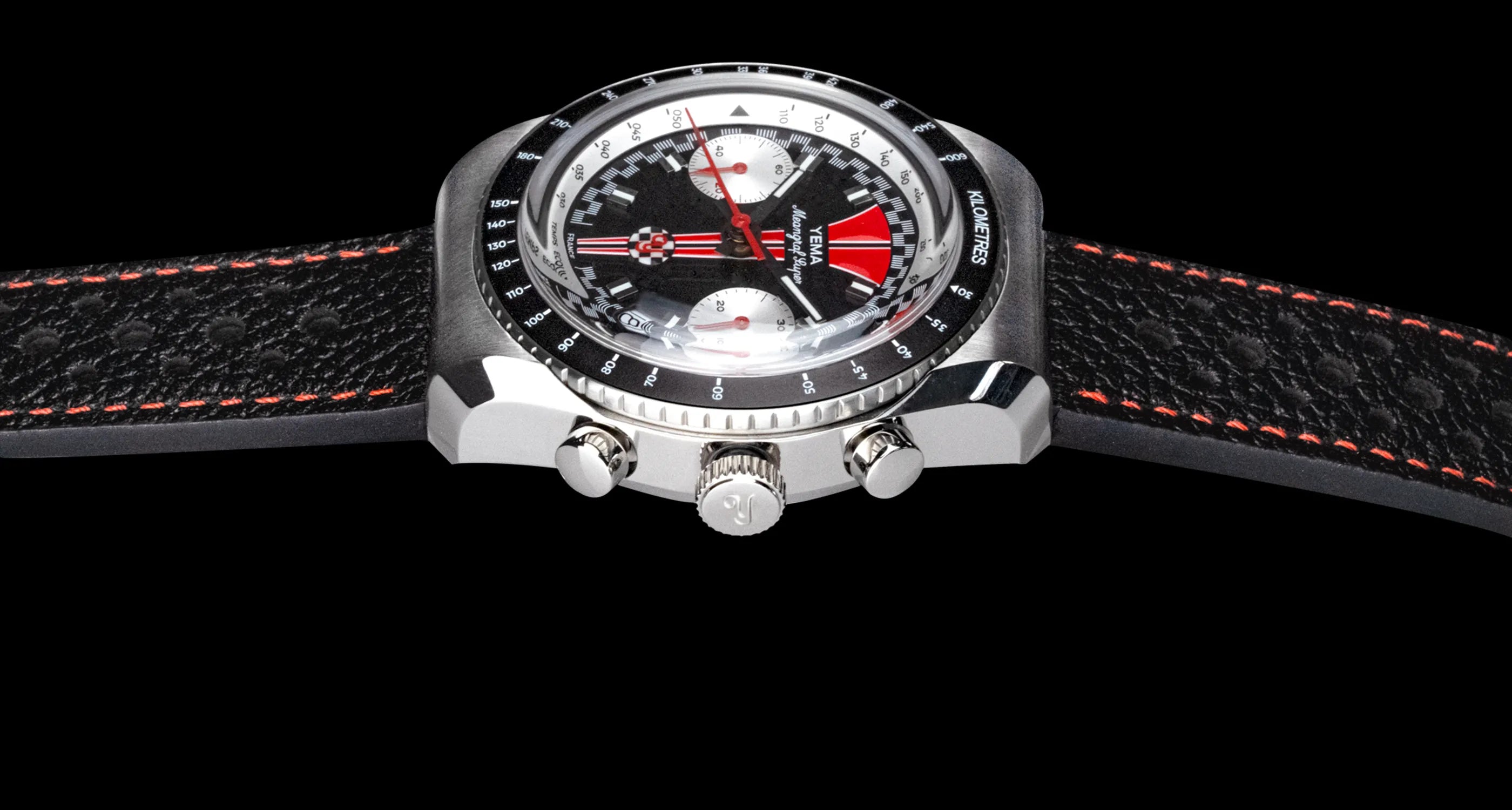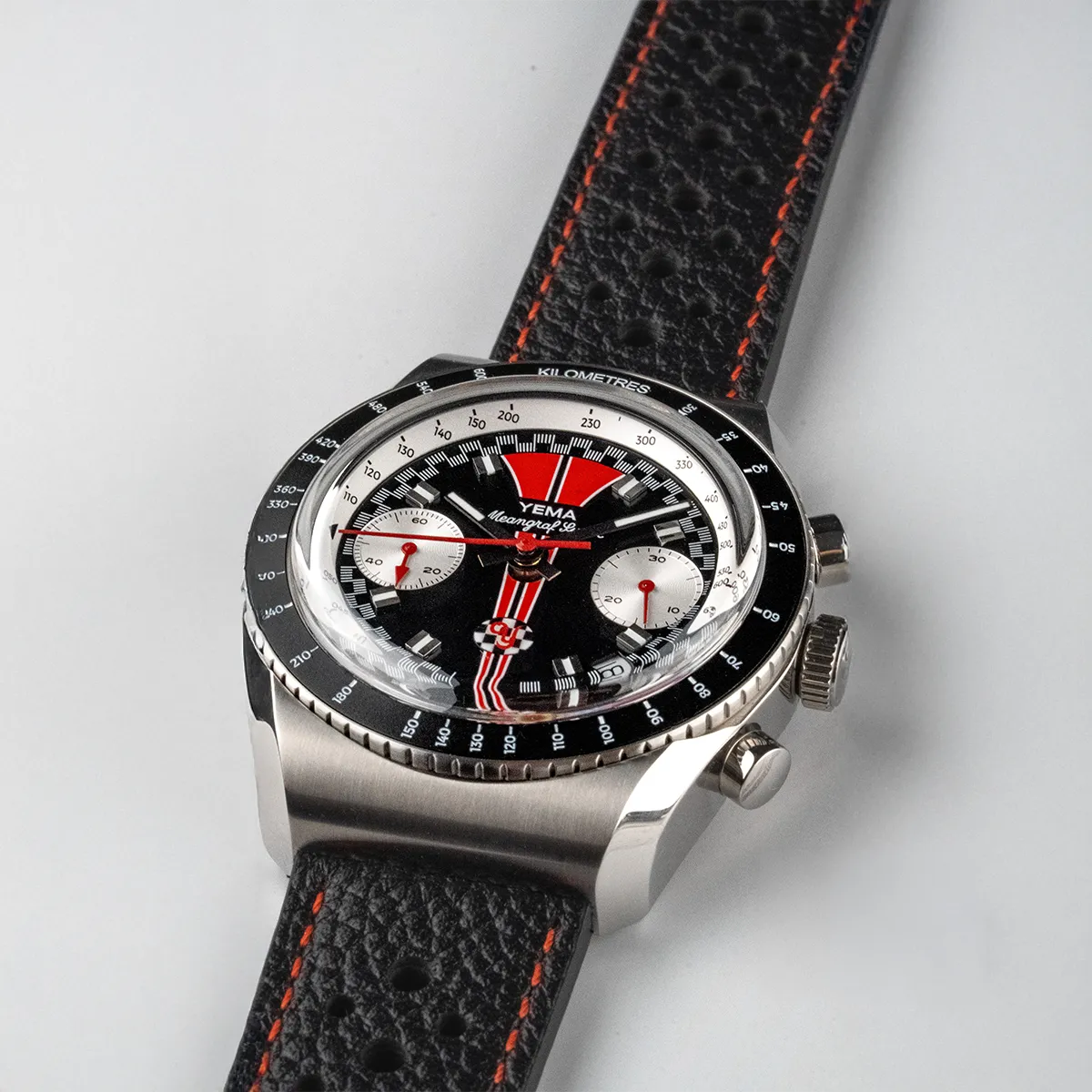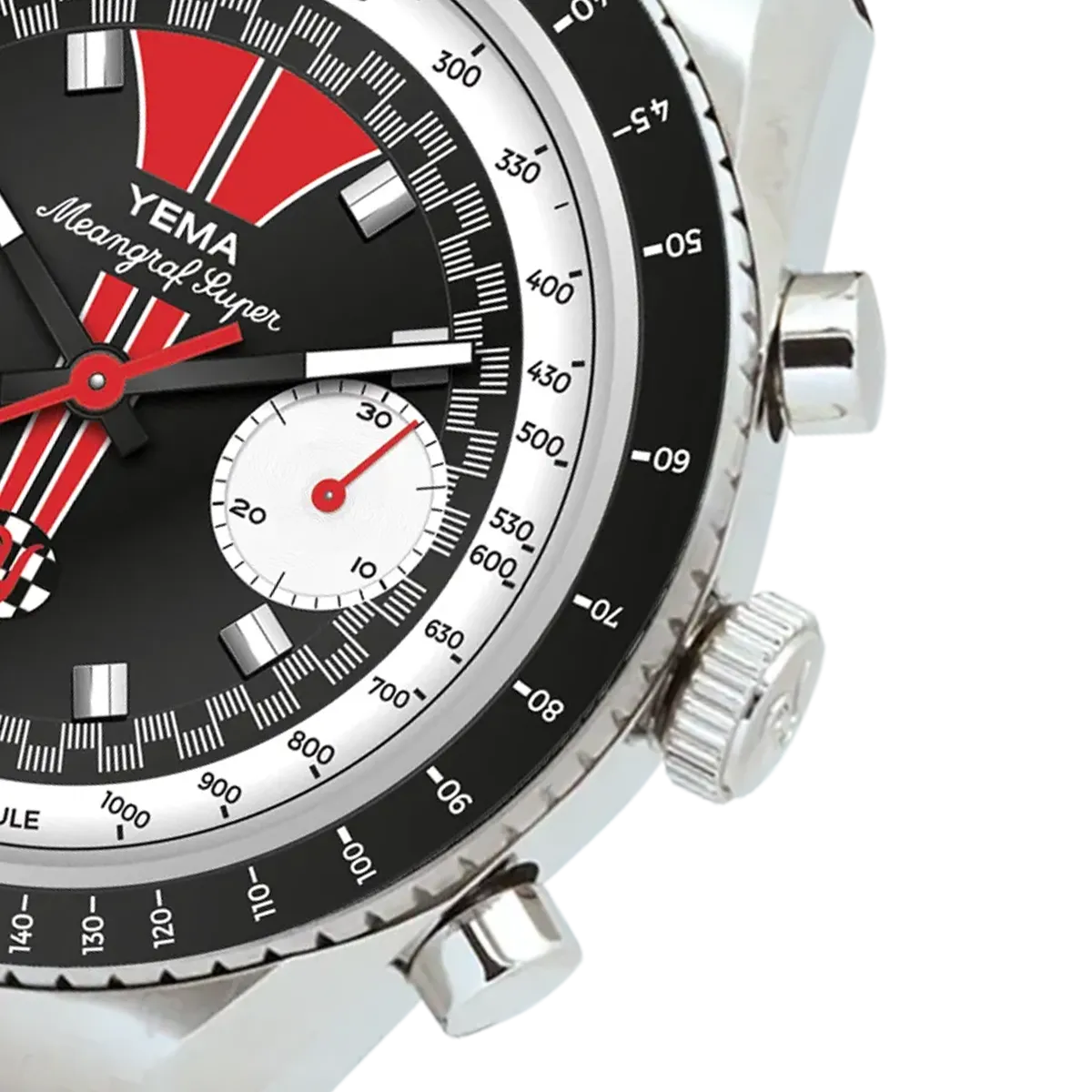 Anfang der 1970er-Jahre präsentierte YEMA einen speziell für den Rennsport entwickelten Chronographen mit einem einzigartigen, integrierten Lünettendesign. Der neue Meangraf ist vom Zifferblattdesign des Modells inspiriert, das am Handgelenk des Helden eines berühmten japanischen Mangas zu sehen ist. Der Chronograph ist mit dem Kaliber ETA Valjoux 7753 ausgestattet und ermöglicht die Messung der Durchschnittsgeschwindigkeit anhand der Lünetten-/Zifferblattmarkierung. Damit richtet sich der Zeitmesser an Motorsportbegeisterte und an Gentleman Drivers auf der ganzen Welt.