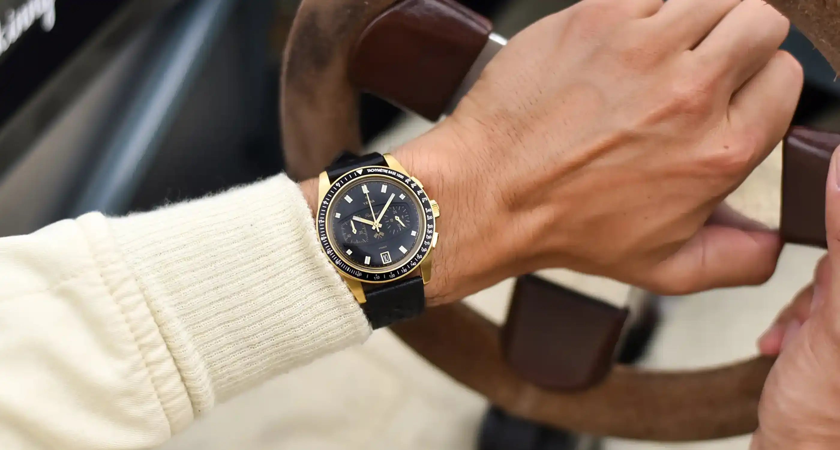 Diese Sonderedition in Schwarz und Gold wurde in Zusammenarbeit mit der Classic Racing School entworfen und erinnert an die Formel-1 des Lotus-Teams aus den 1970er und 1980er Jahren. Sie verfügt über ein komplett neu gestaltetes Stahlgehäuse, Drücker und ein Zifferblatt, das an die Armaturenbretter von Vintage-Rennwagen erinnert. Die Datums-, Zeit- und Chronographenfunktionen werden vom VK64 Hybridkaliber von Seiko angetrieben.