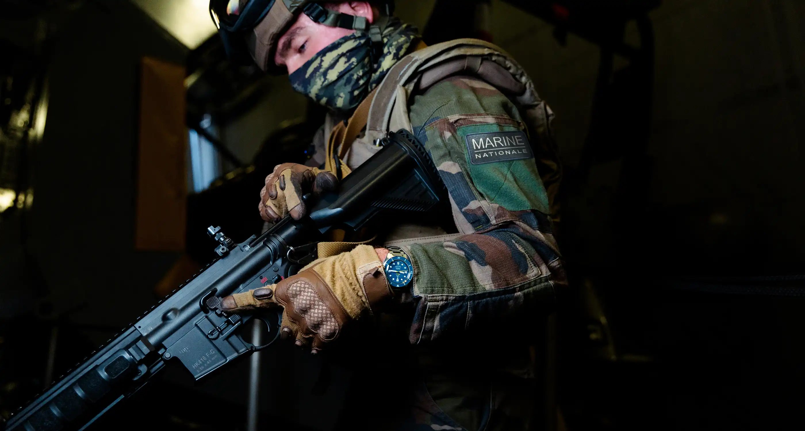 Como partner oficial de la Marine Nationale, YEMA se enorgullece de equipar a los submarinistas militares encargados de algunas de las misiones submarinas más peligrosas del campo de batalla moderno. Diseñados para soportar las condiciones más duras y construidos para una durabilidad y precisión extremas, la fiabilidad total es un requisito absoluto para los relojes-herramienta utilizados en operaciones militares por el personal de la Marine Nationale. Por ello, todos los relojes militares en colaboración con la Marina francesa se diseñan y desarrollan conjuntamente siguiendo estrictas normas militares.