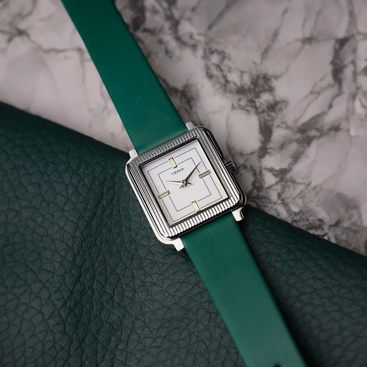Nuestras colecciones, equipadas con el fiable calibre Ronda 1062 y ensambladas en nuestros talleres franceses, representan una excelente opción para quienes desean iniciarse en el mundo de la relojería mecánica de YEMA. Para aquellos que buscan algo aún más exclusivo, las colecciones de YEMA con calibres de manufactura representan la máxima expresión de nuestra artesanía e innovación.