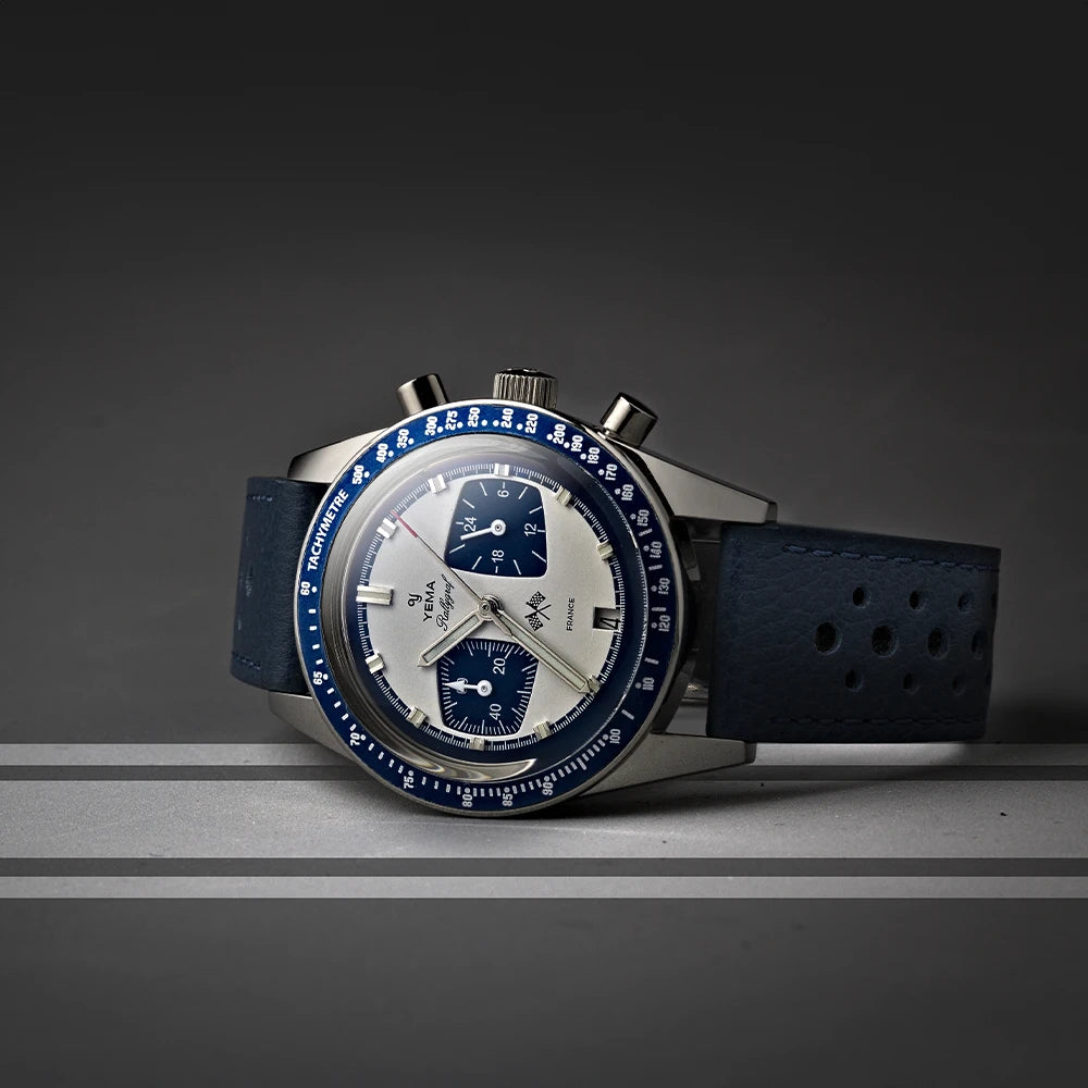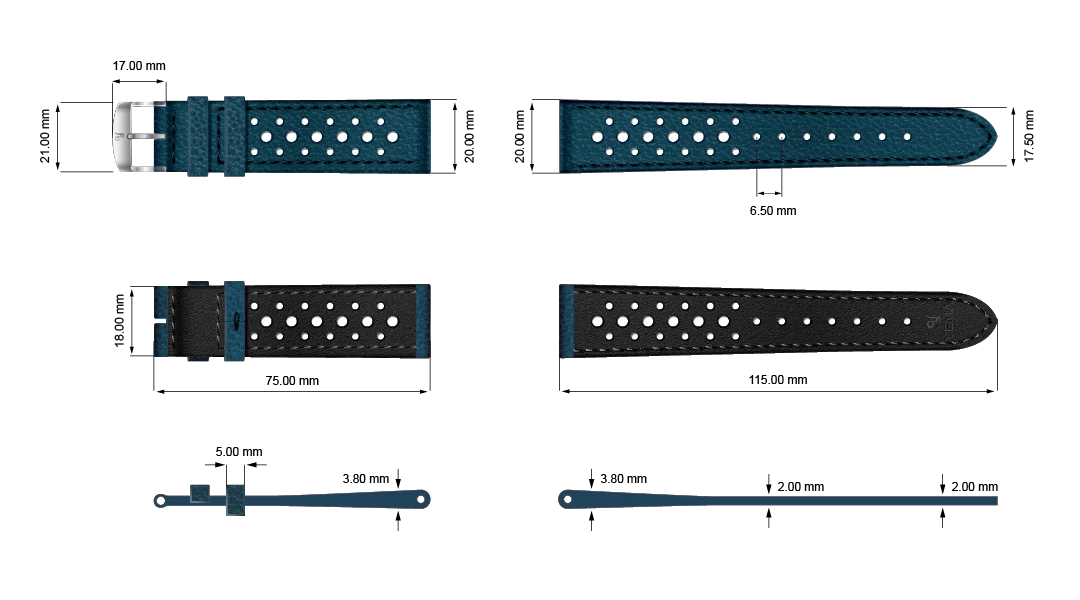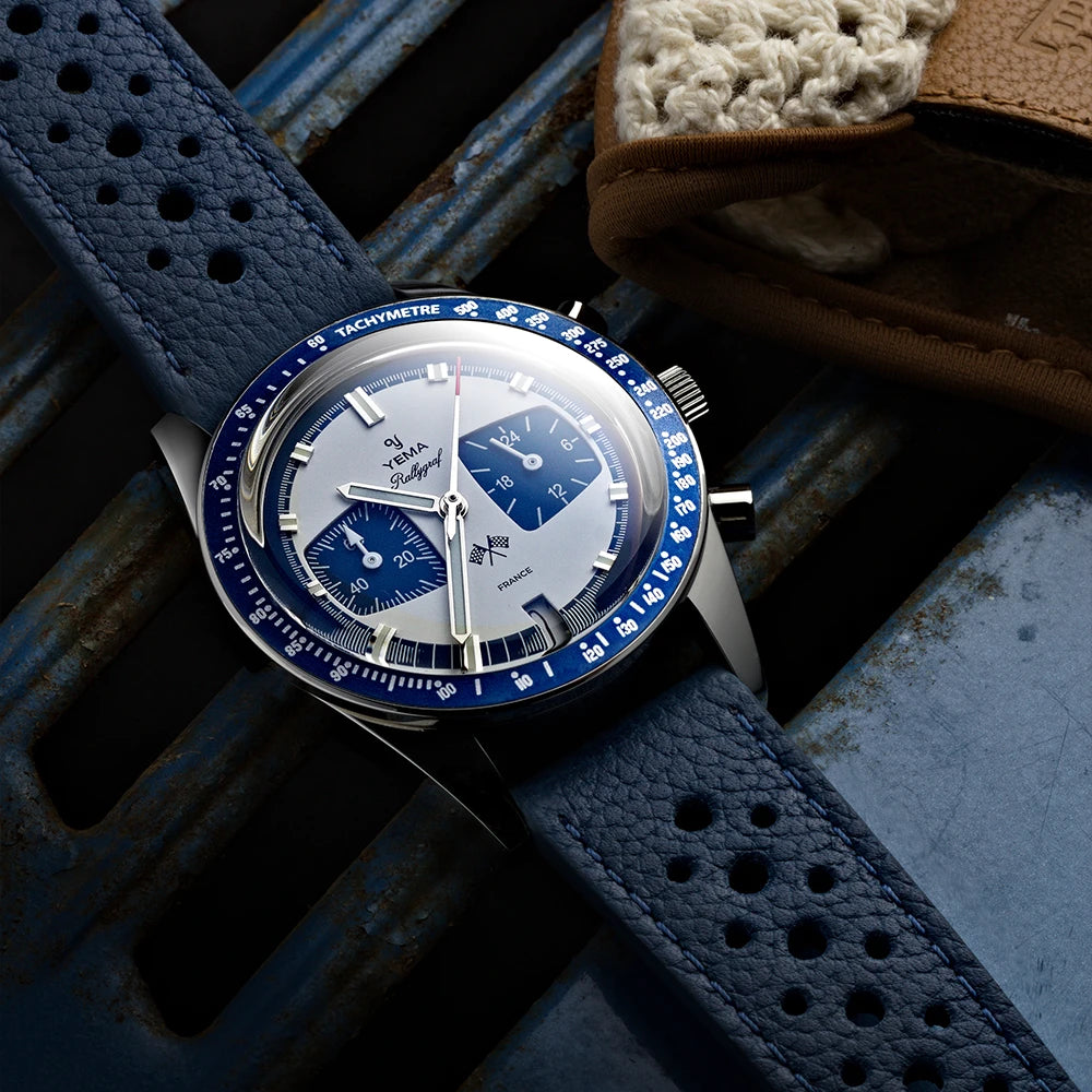 Elaboradas por un fabricante francés de nuestra región (Franche Comté) y diseñadas para los aficionados al automovilismo, nuestras correas de piel perforada se inspiran en los volantes de los coches clásicos y en los guantes de conducir, y son el complemento perfecto para los cronógrafos clásicos.