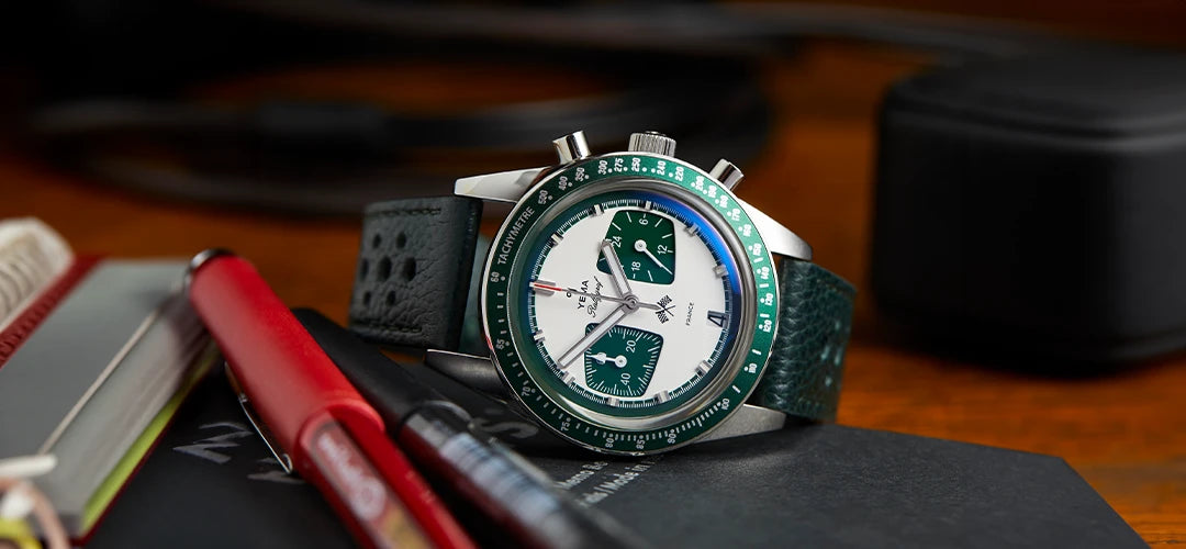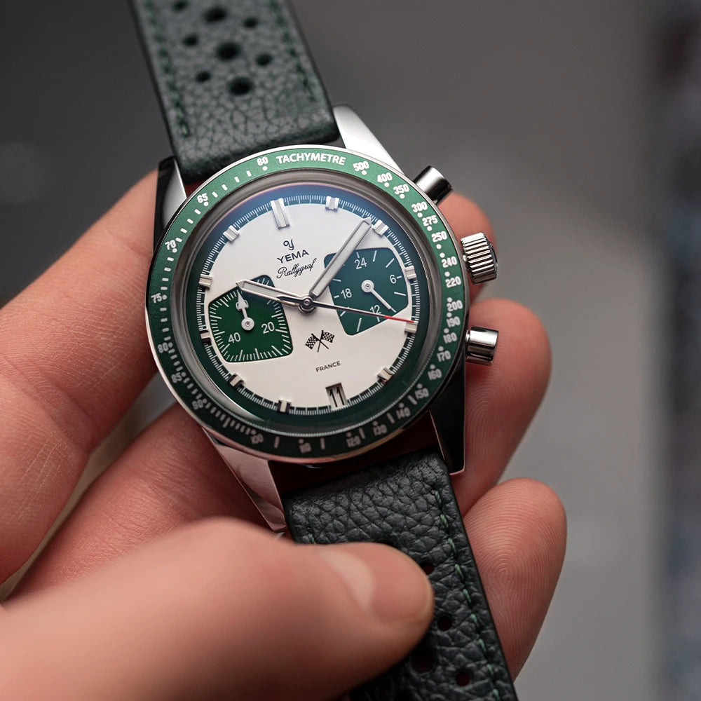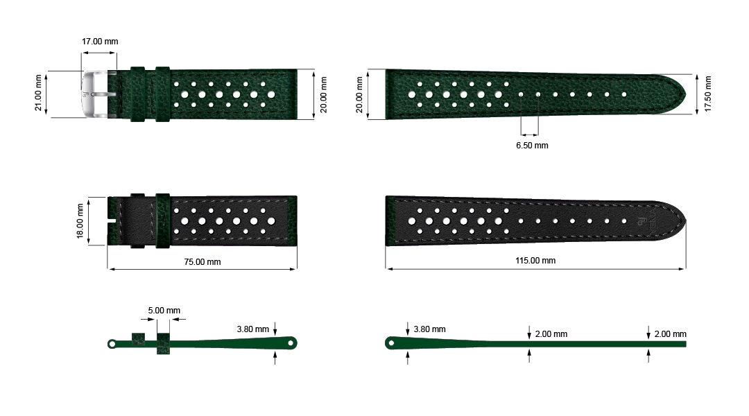 Elaboradas por un fabricante francés de nuestra región (Franche Comté) y diseñadas para los aficionados al automovilismo, nuestras correas de piel perforada se inspiran en los volantes de los coches clásicos y en los guantes de conducir, y son el complemento perfecto para los cronógrafos clásicos.