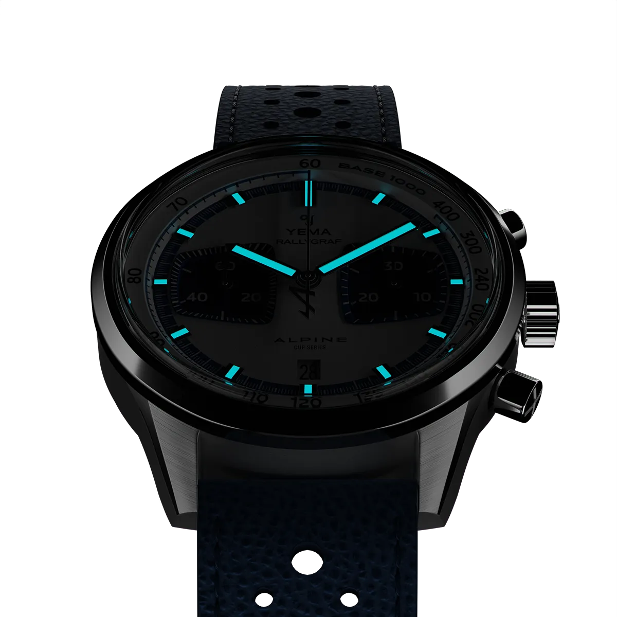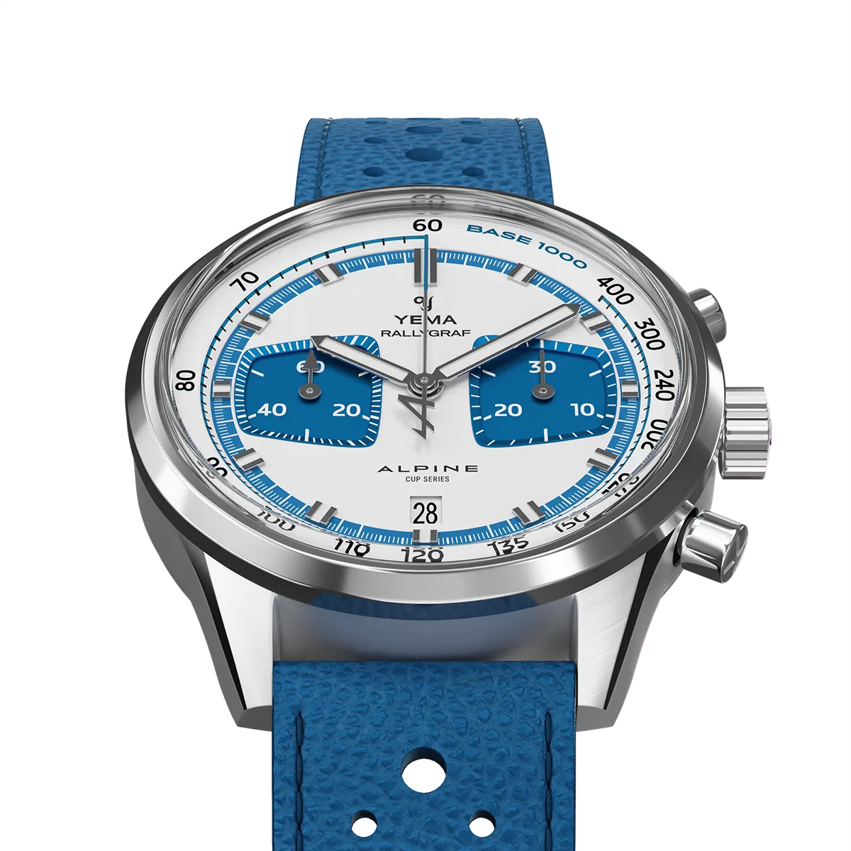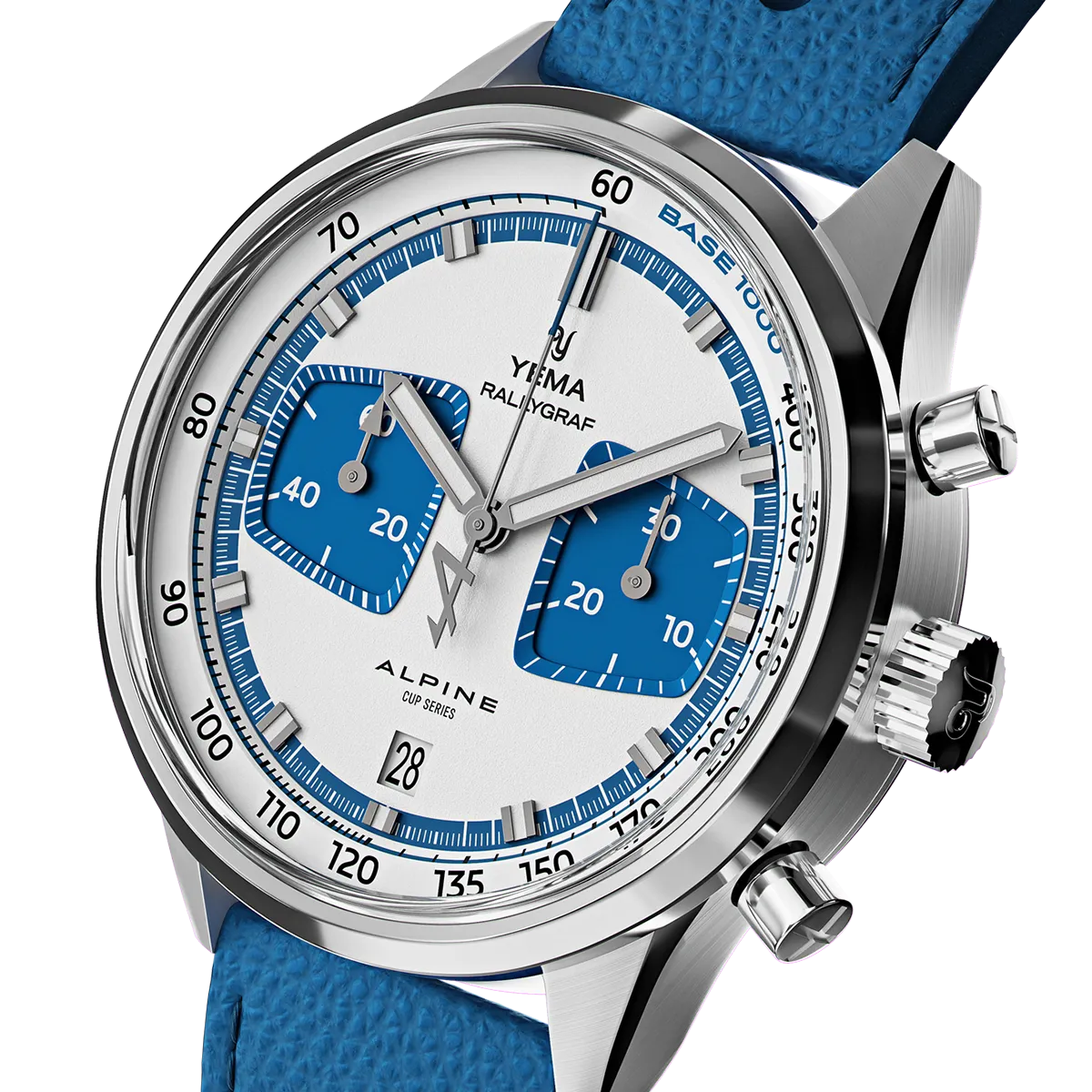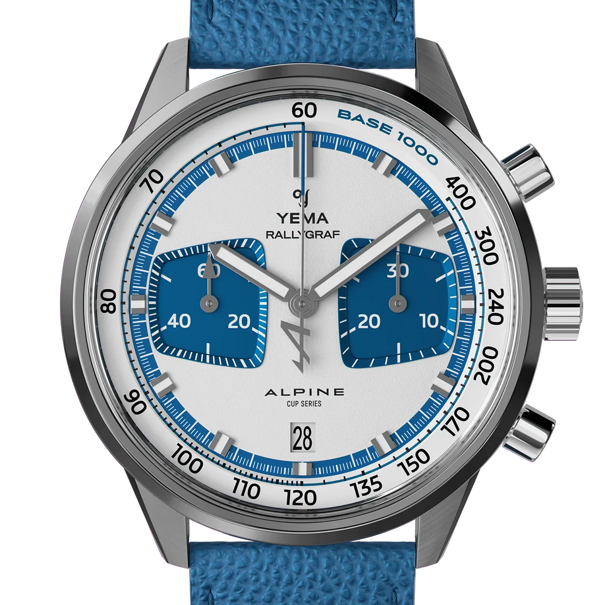 Como Cronometrador Oficial del campeonato Alpine Elf Cup Series, YEMA presenta con orgullo un cronógrafo Rallygraf diseñado en homenaje al legendario espíritu de competición de Alpine. Impulsado por el confiable calibre manual Sellita SW510 y equipado con una distintiva escala taquimétrica interna, esta exclusiva Edición Limitada se complementa con una correa de cuero granulada perforada en azul Alpine, que hace eco del color de la esfera y captura la esencia vibrante del estilo clásico de las carreras francesas.