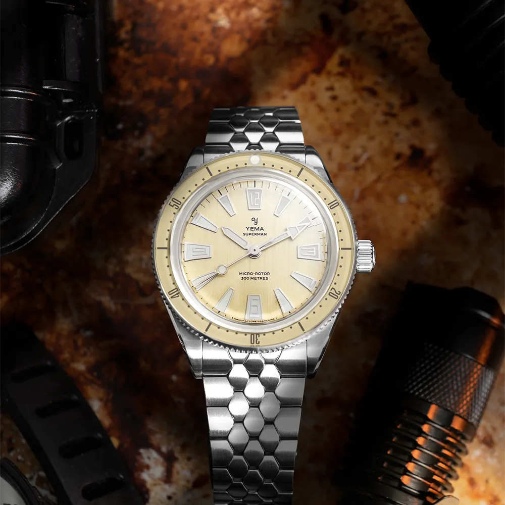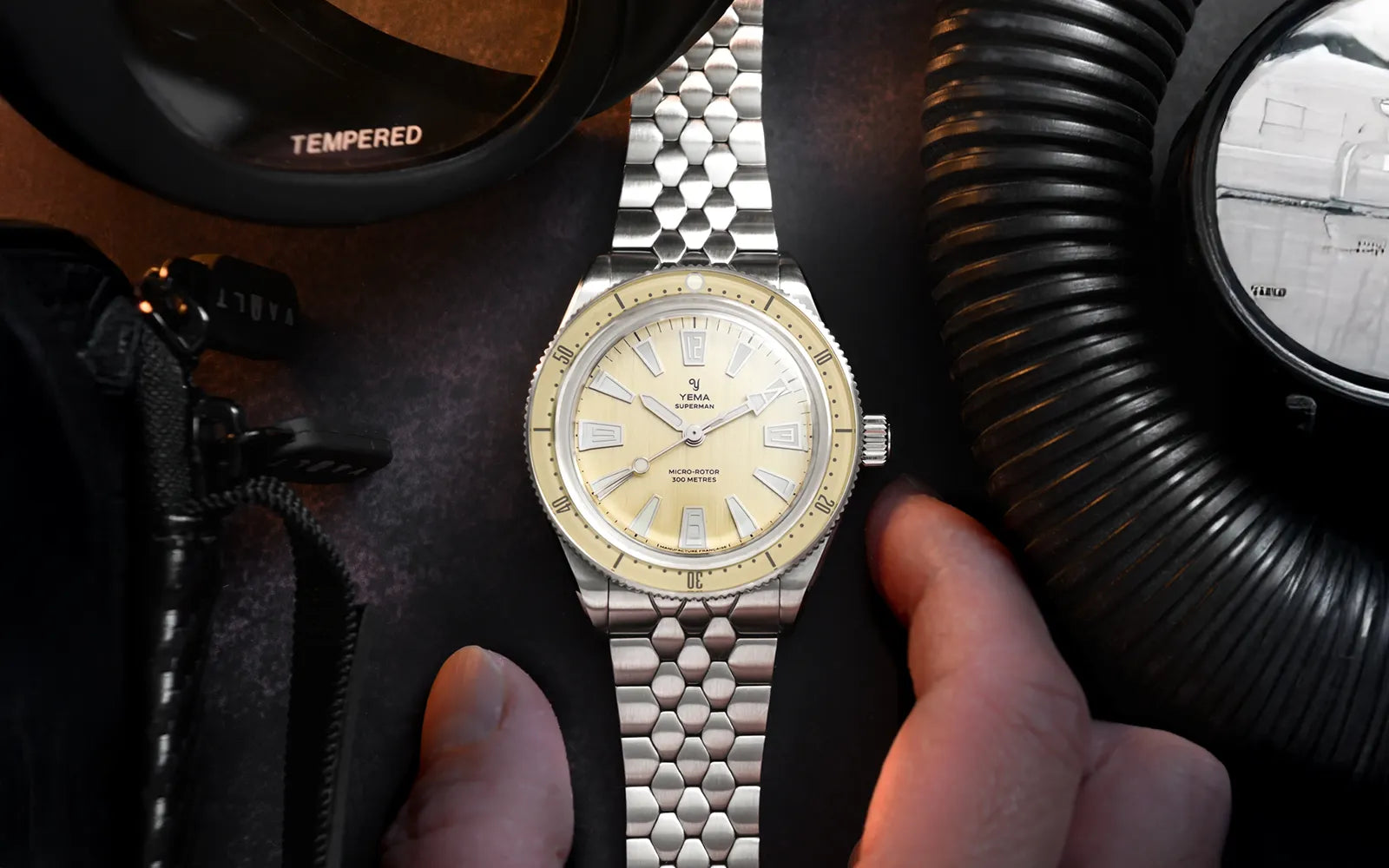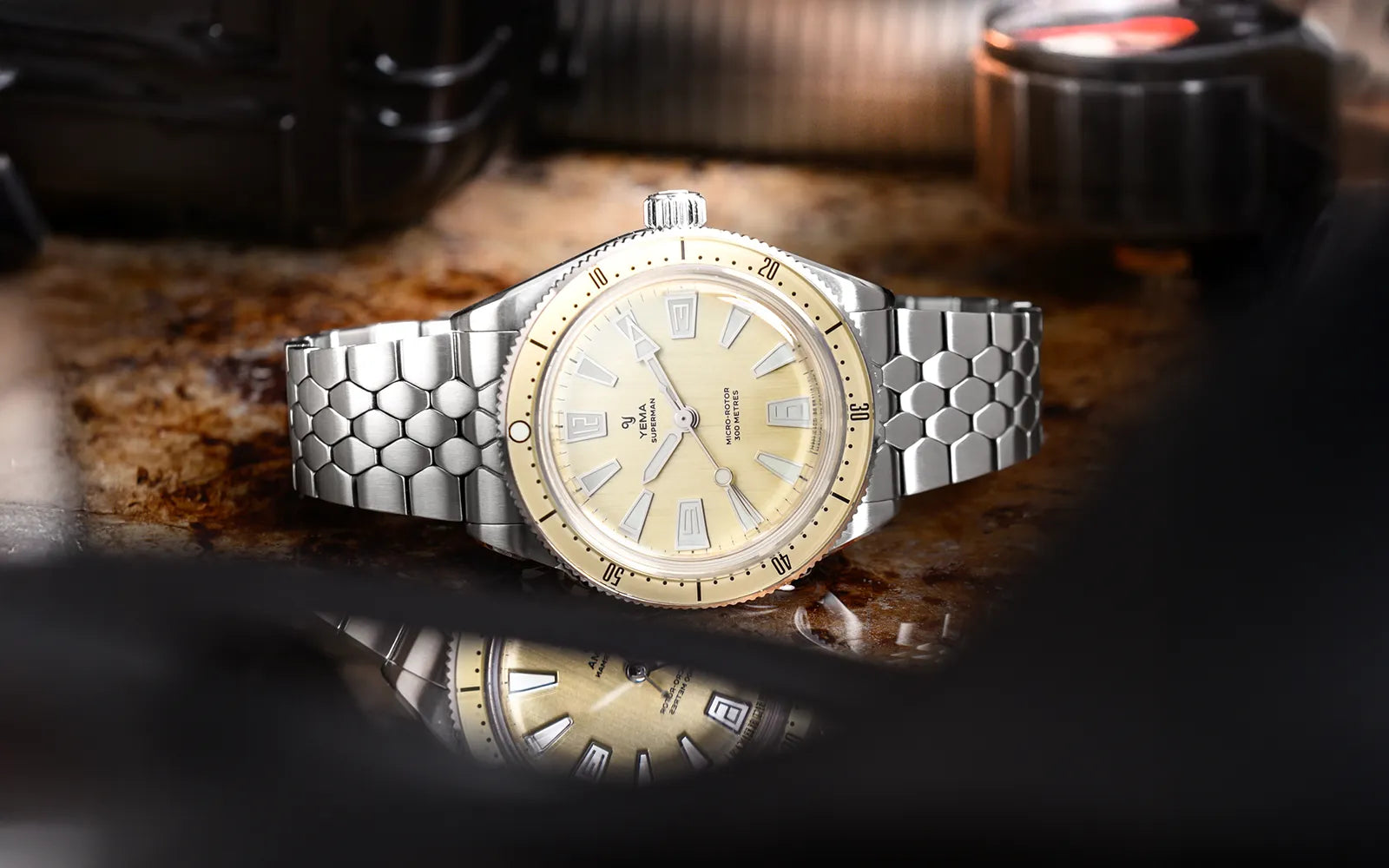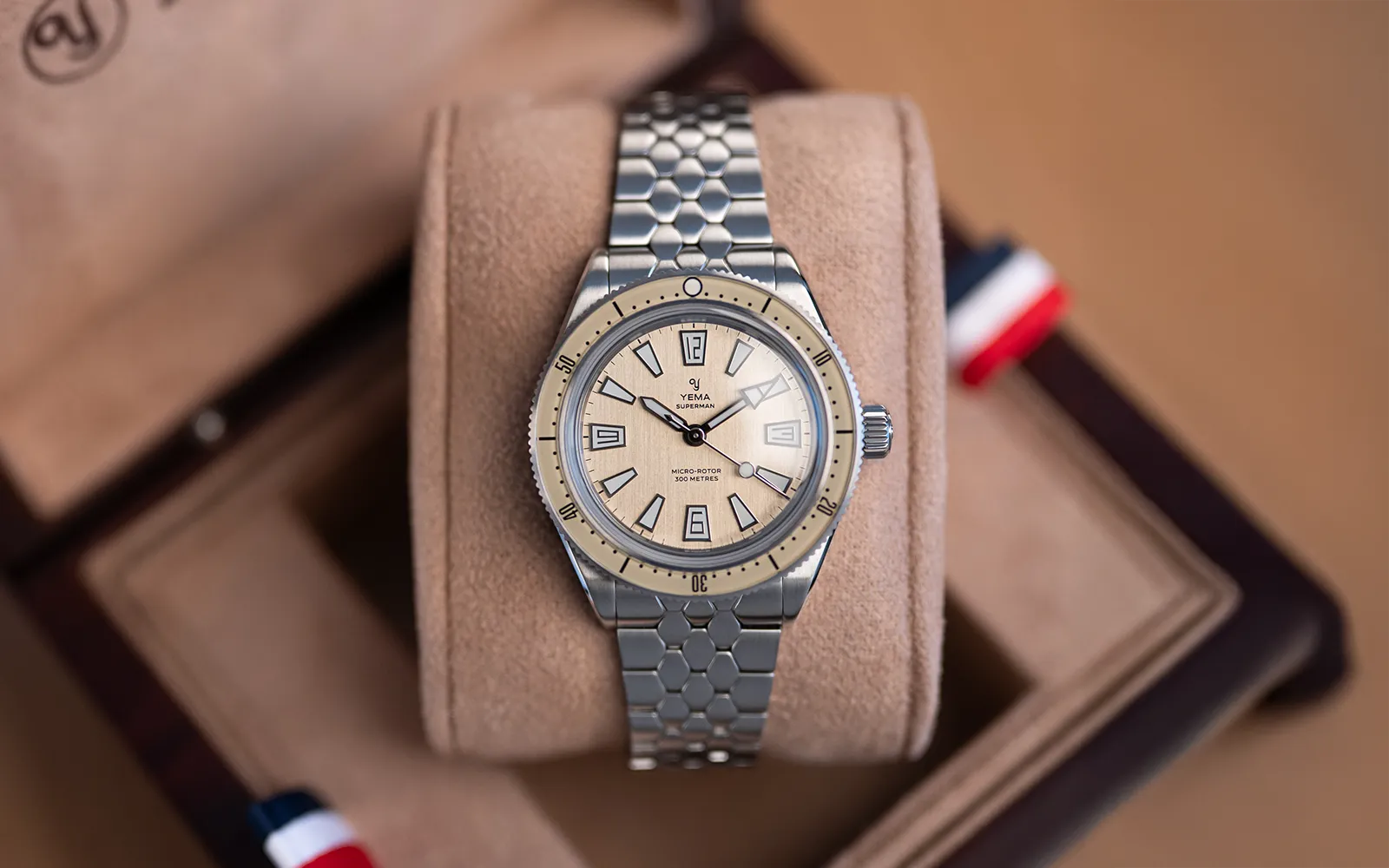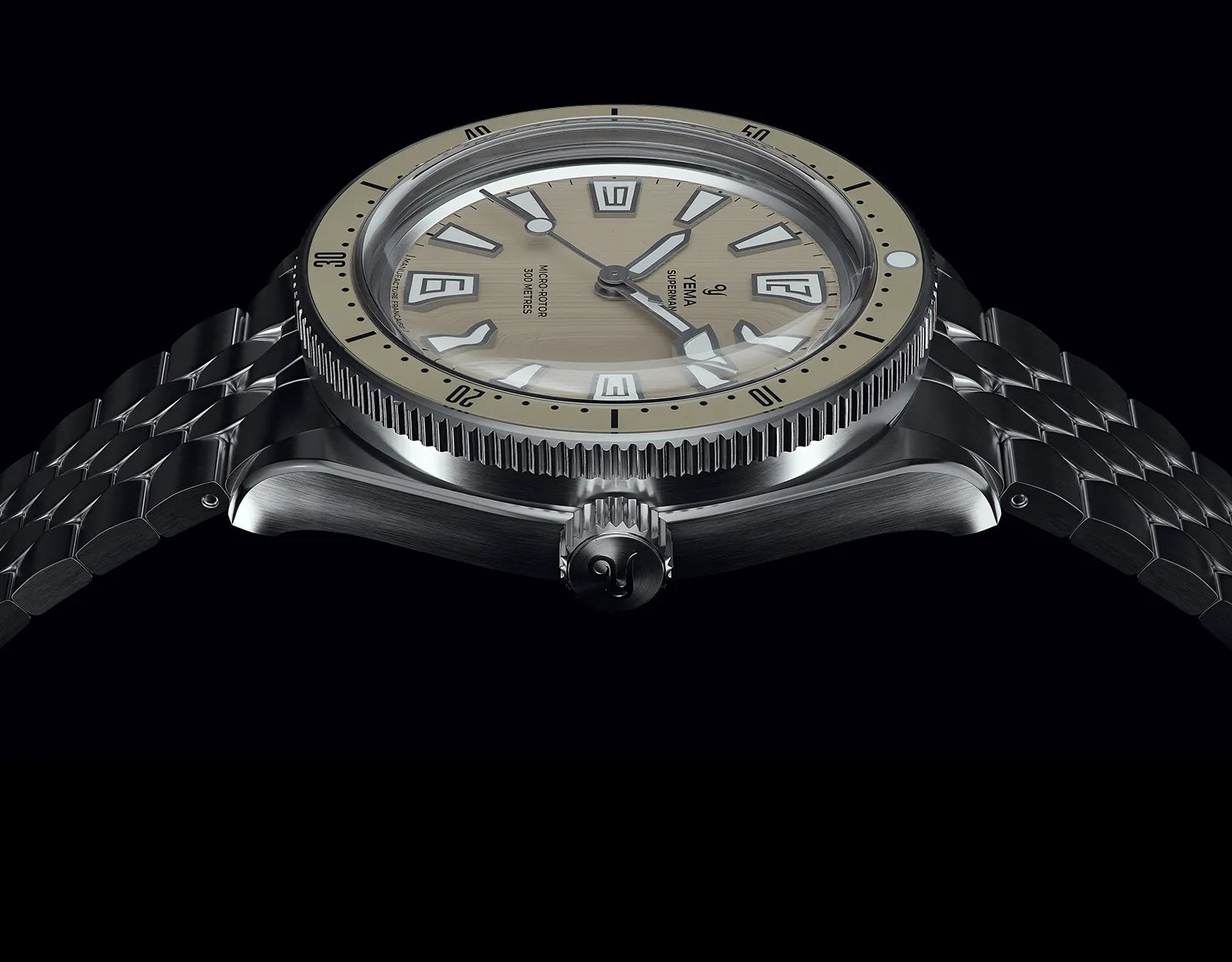 Esta interpretación moderna de los emblemáticos skin divers de los años 60 de YEMA se ve y se siente muy bien en la muñeca, con su aspecto vintage y un toque retro distintivo. Con el brazalete Scales Slim, el Skin Diver CMM.20 se lleva con increíble comodidad y es lo suficientemente elegante como para sentirse apropiado también fuera del agua.