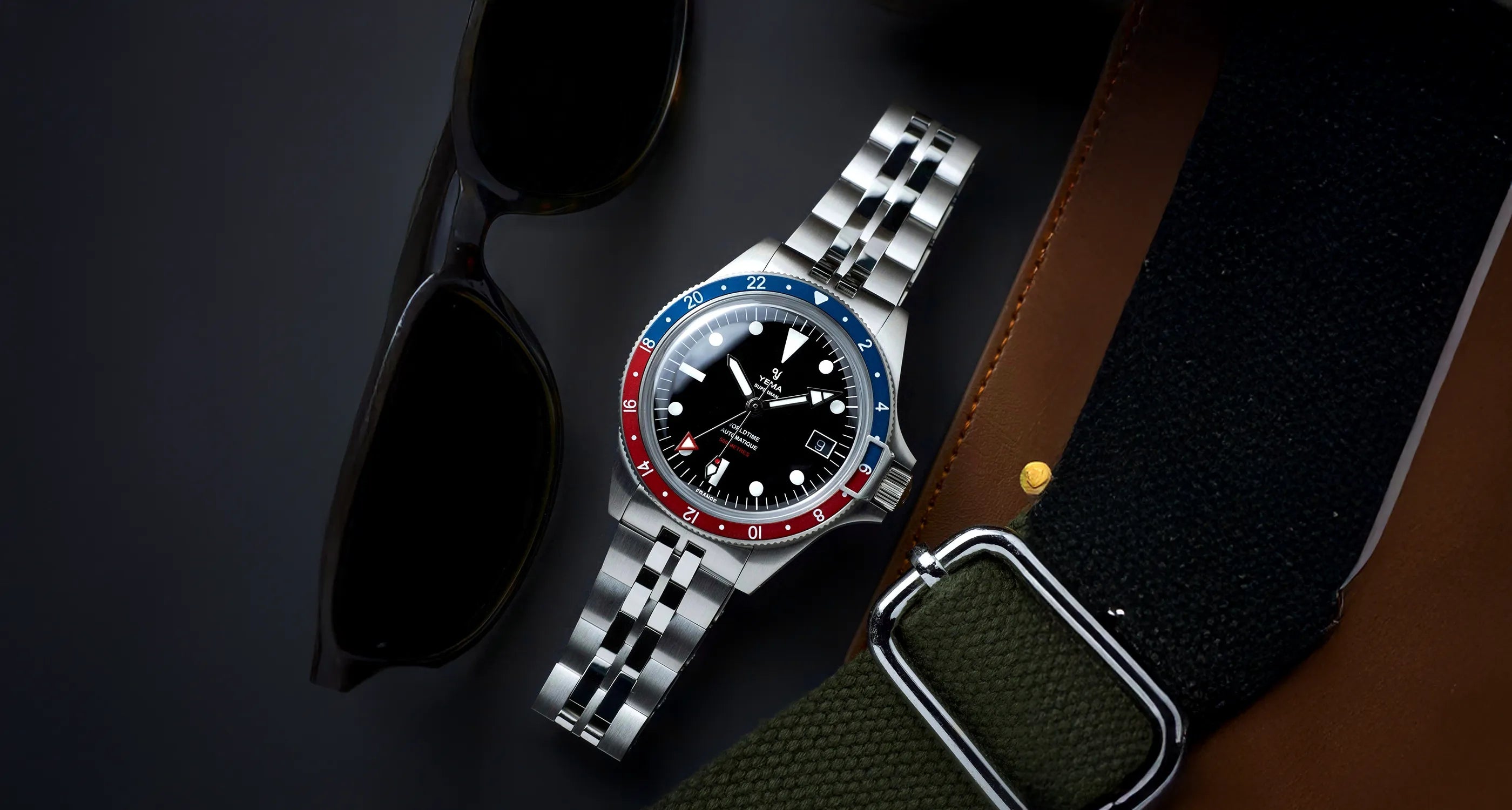 Más allá de sus funciones GMT, el modelo Superman está destinado sobre todo a los profesionales del submarinismo, beneficiándose ahora de una resistencia al agua mejorada de 500 m y de mejoras técnicas que le permiten ajustar el bisel en la superficie del agua al desbloquear el bisel en la posición de corona desenroscada.