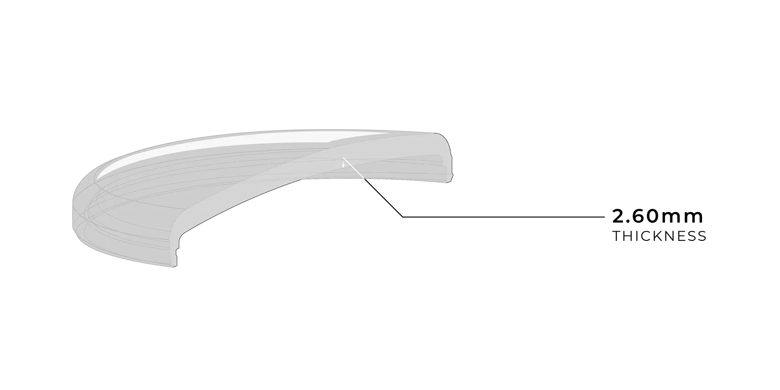 El cristal se ha reducido 0,3 mm en su altura y se ha ensanchado 0,6 mm en su diámetro exterior para ofrecer un mejor asiento en la caja, al tiempo que conserva sus 2,6 mm de grosor y el bello efecto de aumento cuando se mira a través de él desde cierto ángulo.