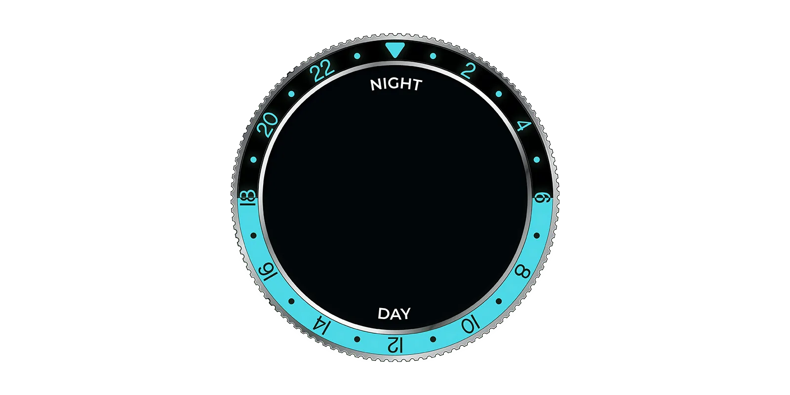 Los índices, las manecillas y el bisel están tratados con Super-LumiNova BGW9 de Grado A para garantizar una mayor legibilidad. El punto luminiscente del bisel a las 12 y la minutera luminiscente en forma de flecha proporcionan a los submarinistas una indicación precisa de los tiempos de inmersión en condiciones de escasa visibilidad a las mayores profundidades. La escala luminiscente de 24 horas del bisel y las agujas luminiscentes facilitan la lectura de los tres husos horarios en cualquier situación.