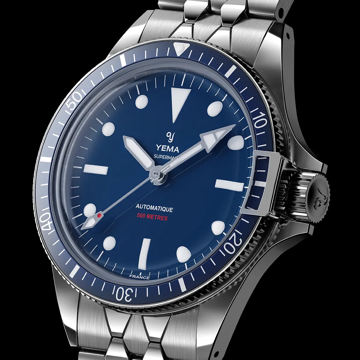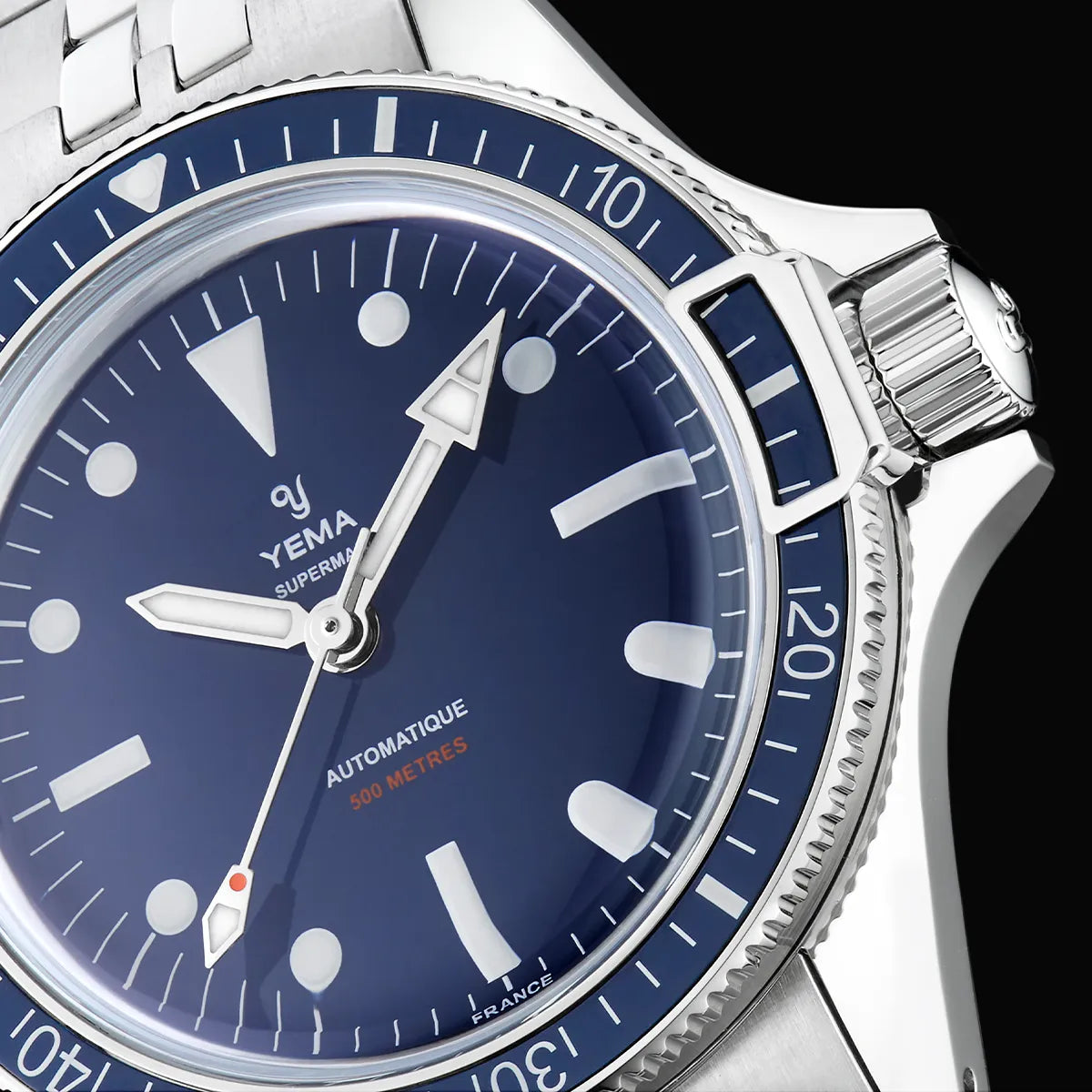 El nuevo Superman 500, una importante evolución del emblemático modelo de YEMA de los años 60, es el digno heredero de sus predecesores. Equipado con nuestro calibre interno YEMA2000 y, por primera vez, resistente al agua hasta 500 m, este Superman mejorado se beneficia de una arquitectura modernizada y de mejoras técnicas sustanciales que lo sitúan como el diver profesional francés definitivo.