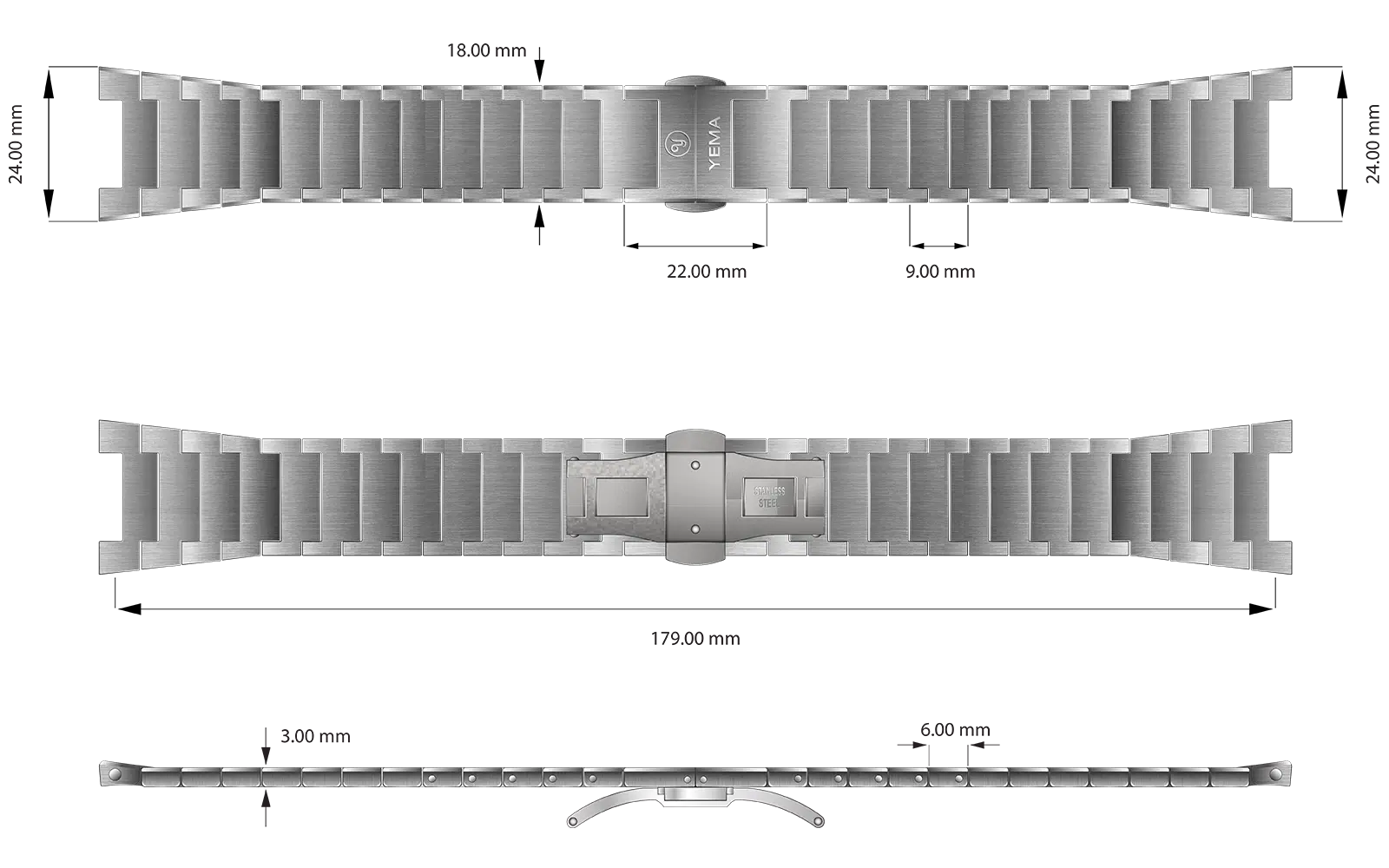 El cierre de mariposa del brazalete está dotado de un cómodo y elegante mecanismo de microajuste que permite ajustar la longitud entre 1,5 mm y 3 mm.
