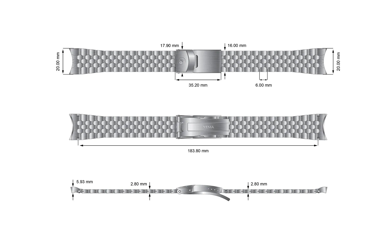 The 316L stainless steel folding clasp adds style and comfort with its brushed finishes. The YEMA logo is embossed on the upper part and the mention MAISON HORLOGÈRE FRANÇAISE SINCE 1948 is engraved on the lower part of the buckle. The bracelet has an extension so that it can be easily and quickly adjusted over a diving suit.