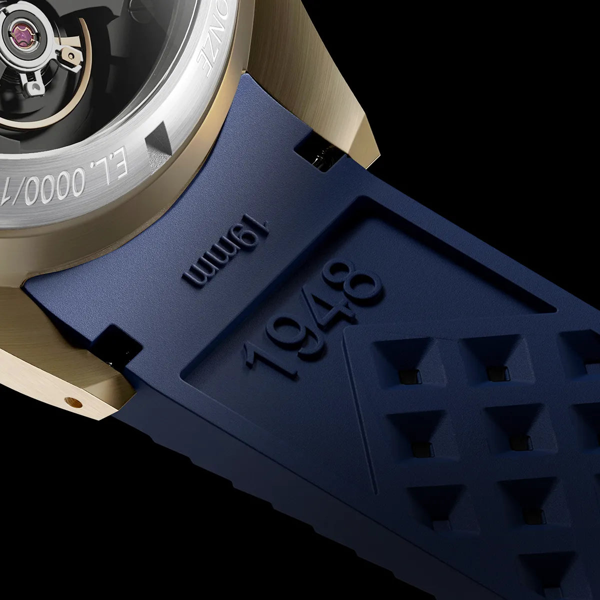 Ce bracelet intégré en caoutchouc a été spécialement conçu pour s'adapter aux cornes droites et longues de tous les modèles Superman et ainsi préserver son design global vintage. Fabriqué en caoutchouc FKM VITON® de haute qualité, ce bracelet est idéal pour la plongée grâce à sa grande résistance à l'eau salée, au soleil et aux températures extrêmes, tout en offrant une haute résistance dans le temps et une sensation de confort au poignet.