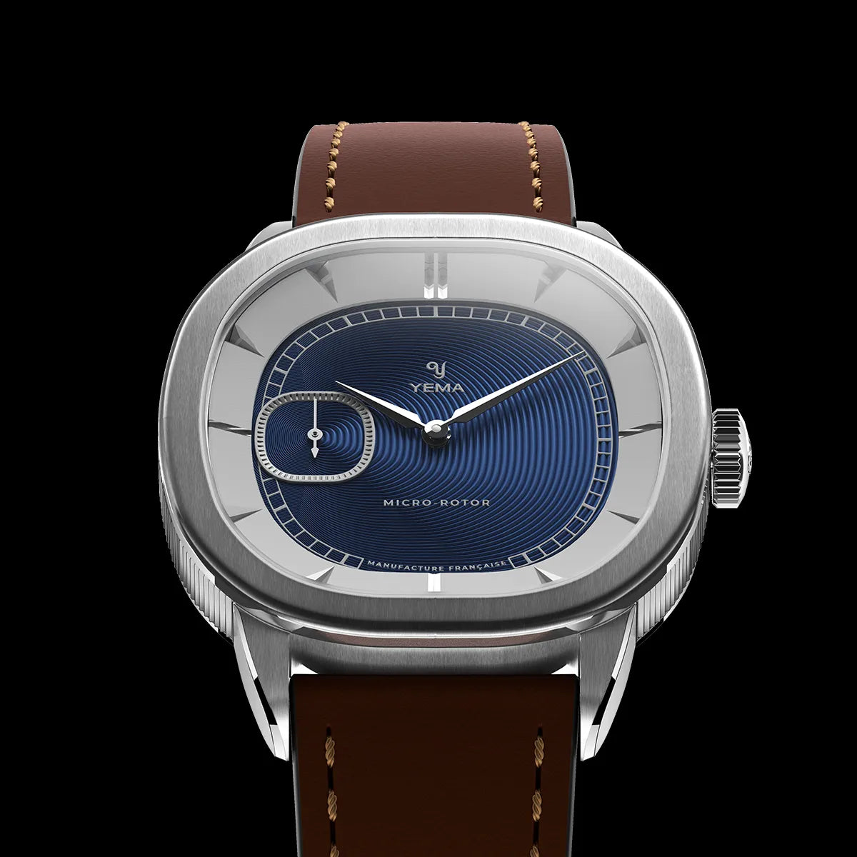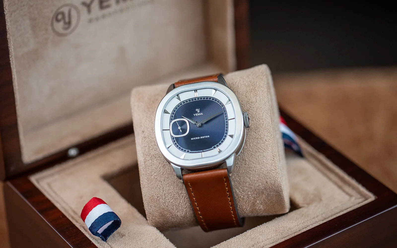 Avec un profil ultra-fin de seulement 8,60 mm, le boîtier offre une élégance discrète, sublimée par une couronne coussin signée du “Y” historique de YEMA, clin d’œil à l’héritage de la marque. Son design soigné assure une présence raffinée et confortable au poignet, sans ostentation.
