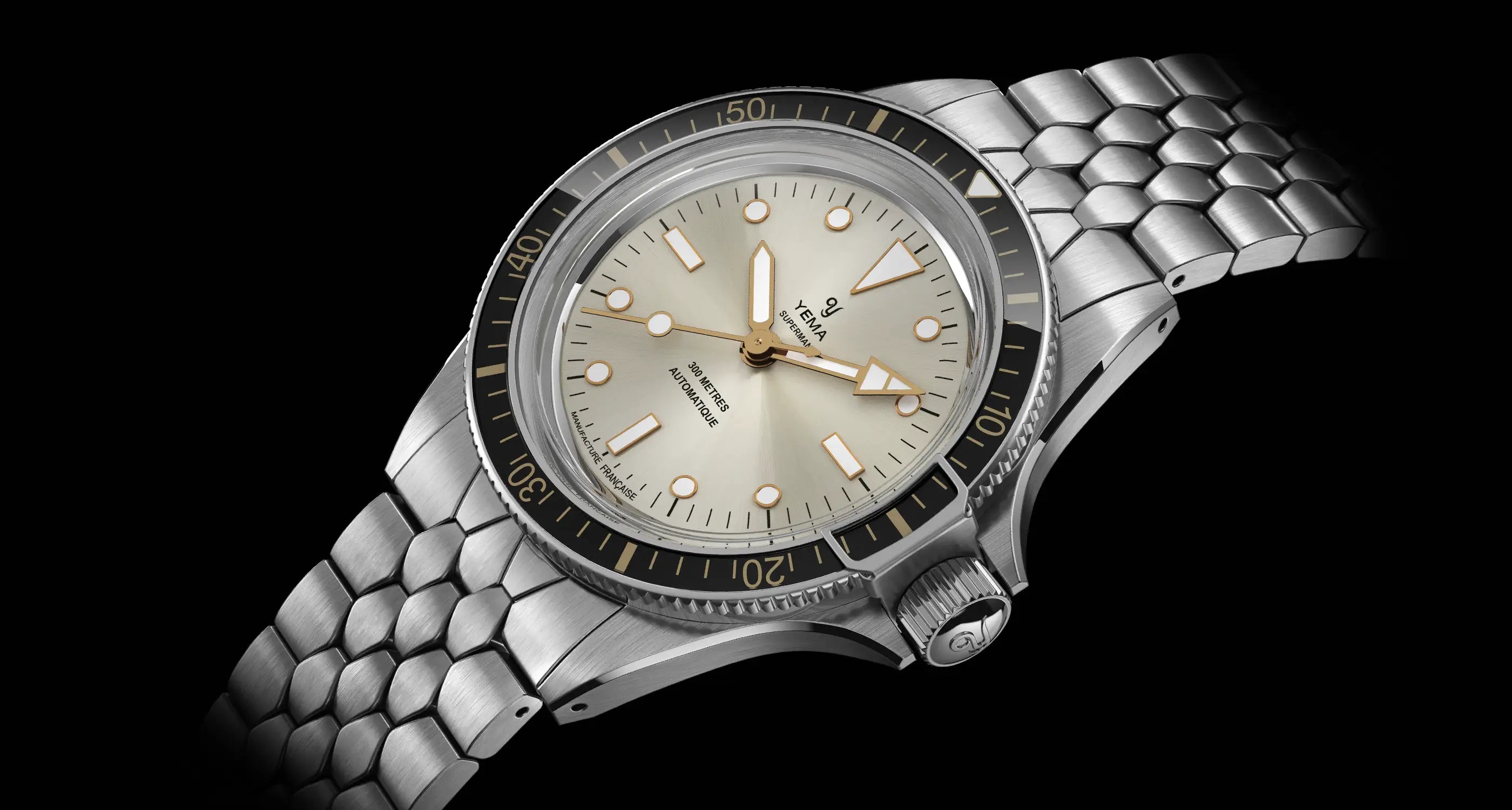 L'emblématique bracelet acier YEMA Scales des années 1960 s’est affiné de 0,40mm afin de s'intégrer harmonieusement aux boîtiers plus fins des Superman CMM.10.