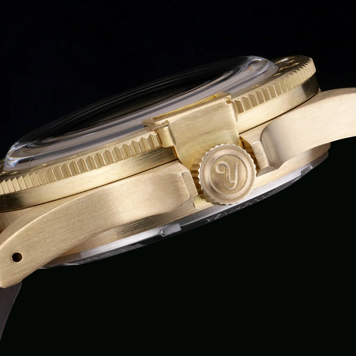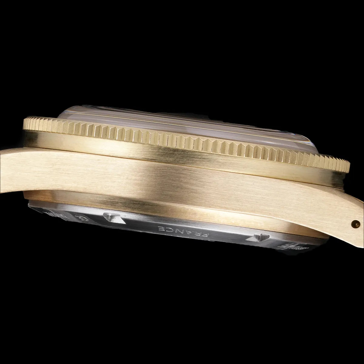 Le bronze est un matériau historique des équipements de plongée. Selon son utilisation et son exposition aux conditions météorologiques, le bronze patinera différemment et rendra chaque montre unique et authentique..