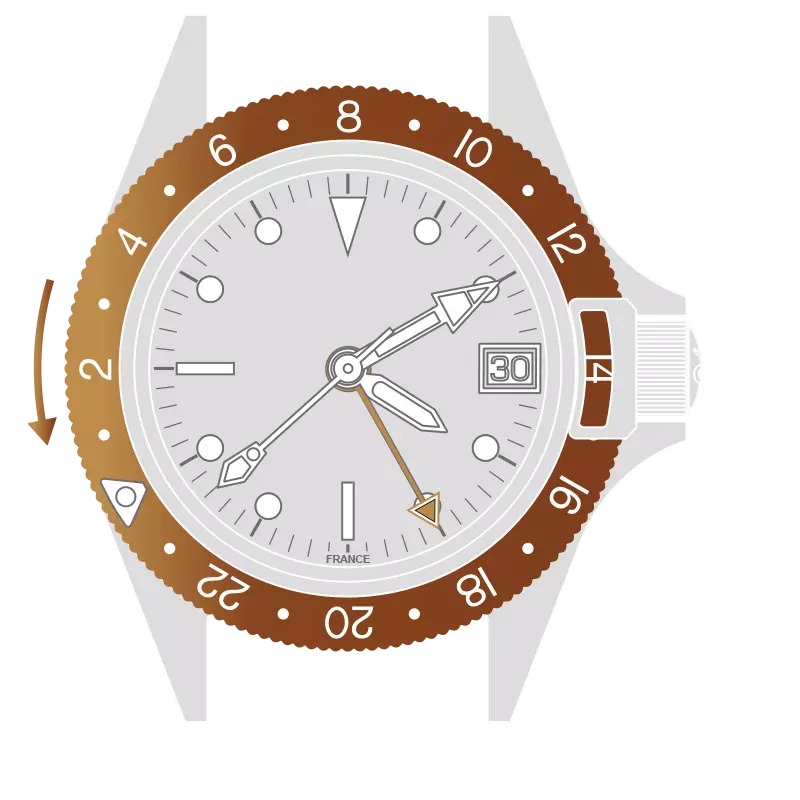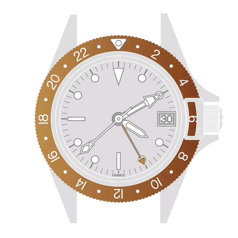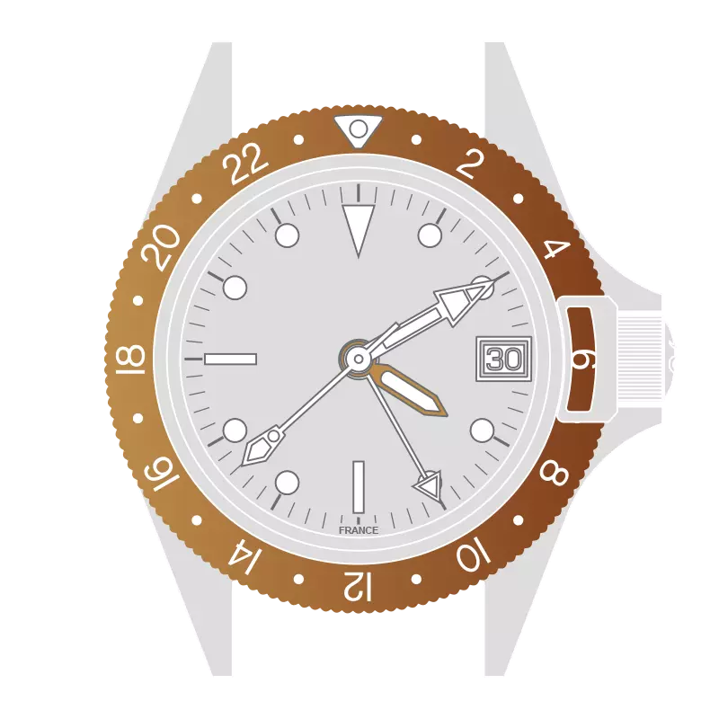 Lunette unidirectionnelle en bronze, graduation GMT 24 heures