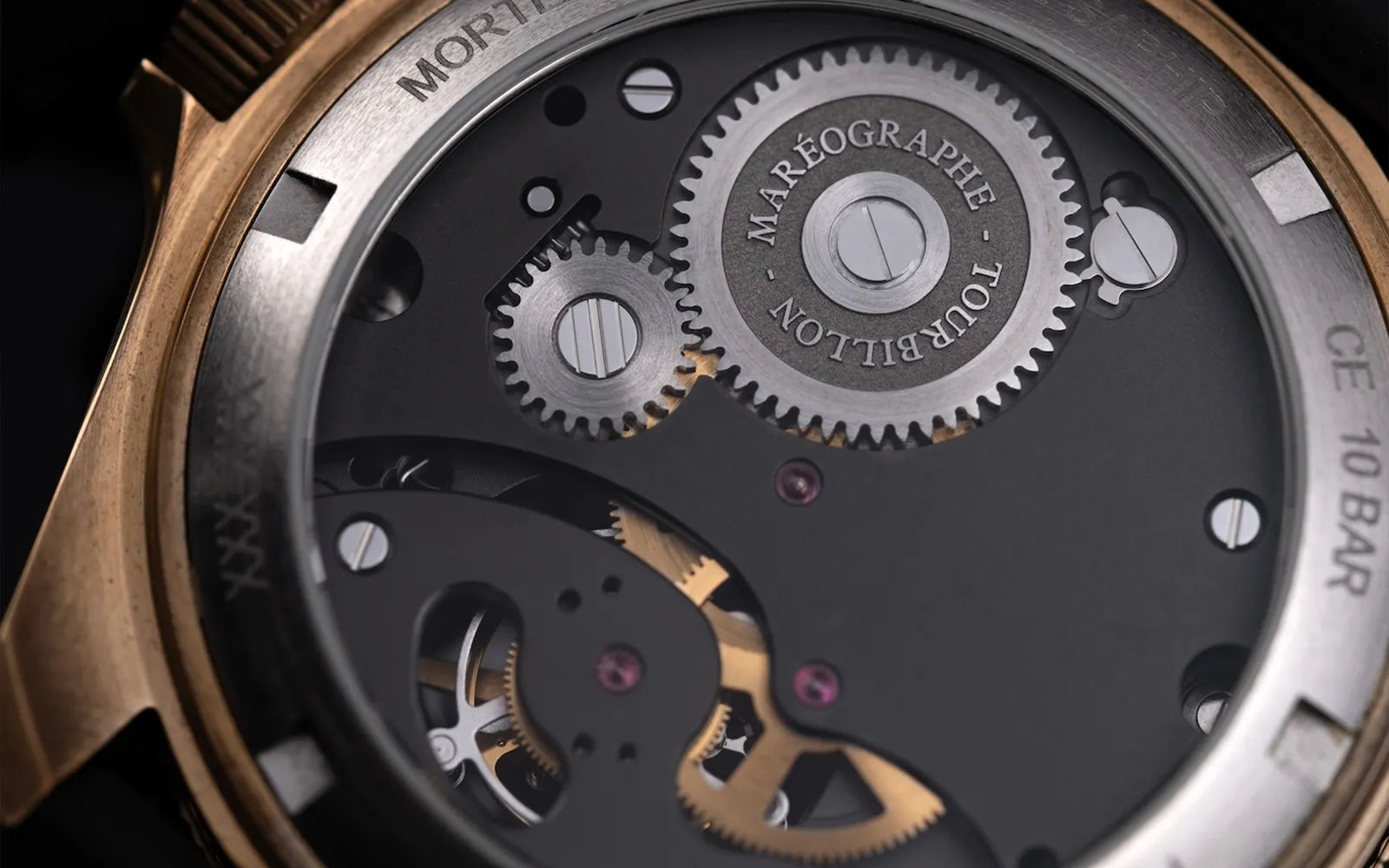 Entièrement conçu et fabriqué dans le massif jurassien Franco-Suisse à Morteau et ses alentours, ce chef-d'œuvre horloger est animé par un calibre tourbillon à remontage manuel signé Olivier Mory, célèbre Horloger-Concepteur basé à La Chaux-de-Fonds.