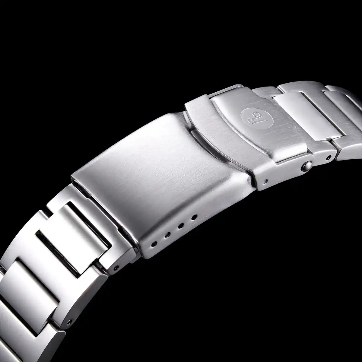 Il bracciale in acciaio 316L è dotato di chiusura déployante a doppia sicurezza con prolunga per poterlo regolare facilmente e velocemente sopra la muta da sub.