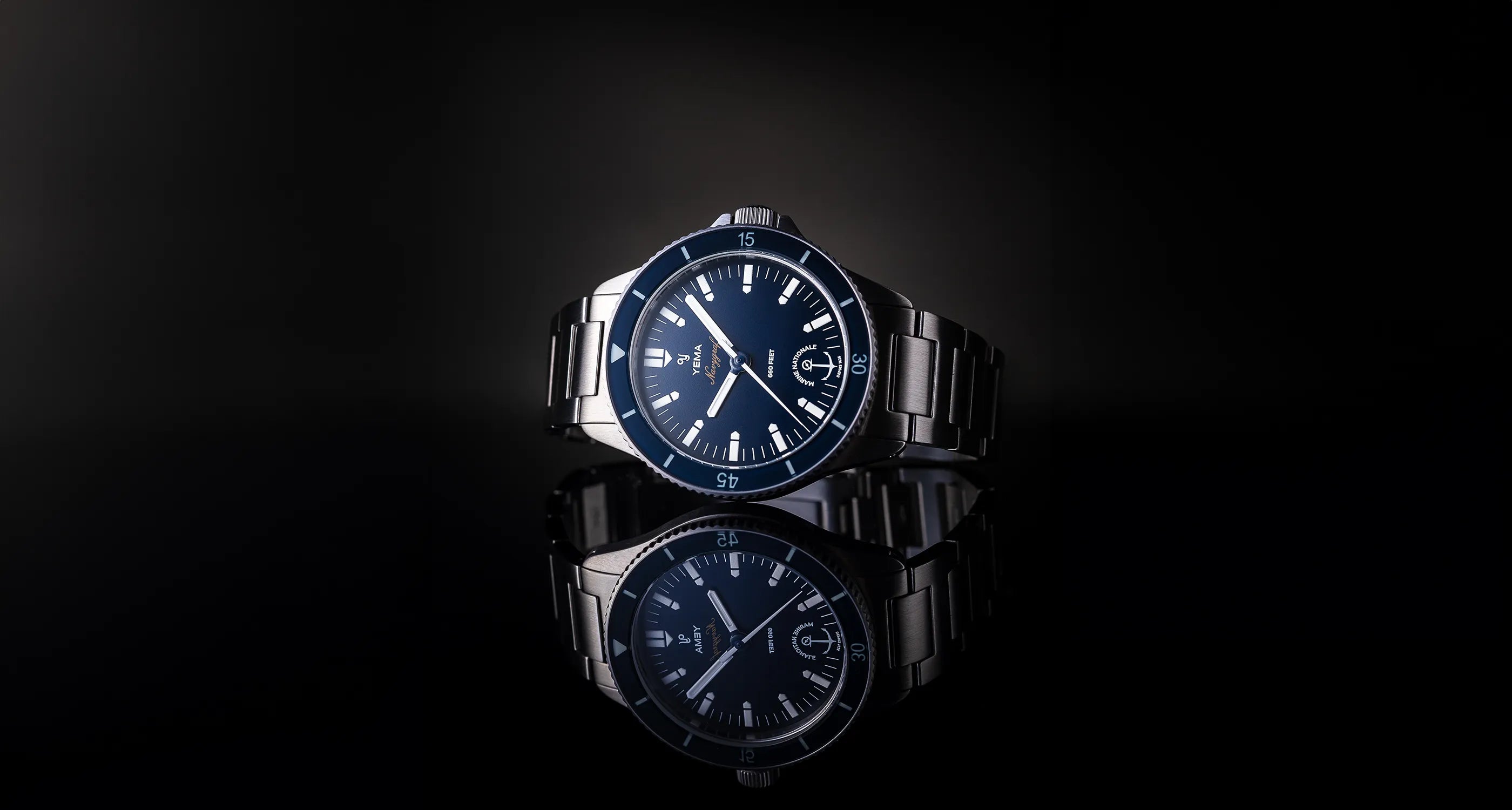 La firma di YEMA #TimeofHeroes risale al 1970. Riflette la storia e i valori del marchio e cosa rappresenta. Racconta le avventure di sportivi e esploratori straordinari che hanno ottenuto risultati straordinari nelle condizioni più estreme. YEMA è orgogliosa di equipaggiare la Marina francese con orologi da lavoro di grado militare appositamente progettati per le attività marine e subacquee.