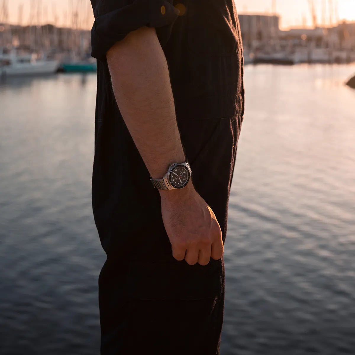 Orologio fornito con 2 cinturini (acciaio inossidabile + cinturino elastico ufficiale della Marina Francese), una custodia da viaggio della Marina Nazionale e una tessera di garanzia internazionale di 2 anni in pelle.