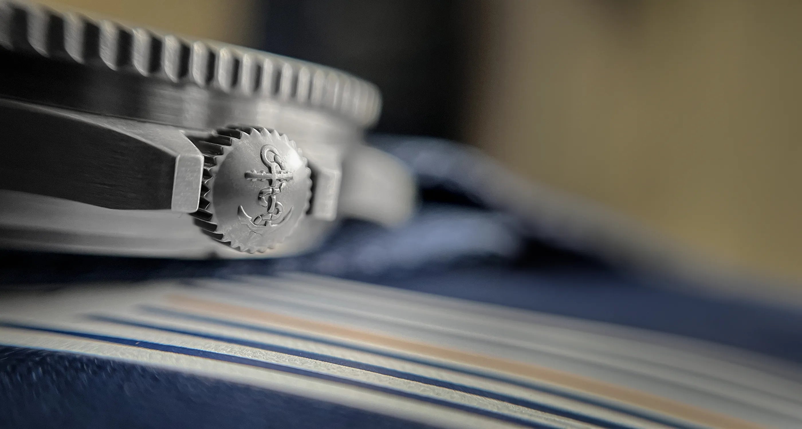 Il fondello in acciaio 316L mostra con orgoglio lo stemma della Marine Nationale splendidamente applicato in rilievo con una pressa idraulica.