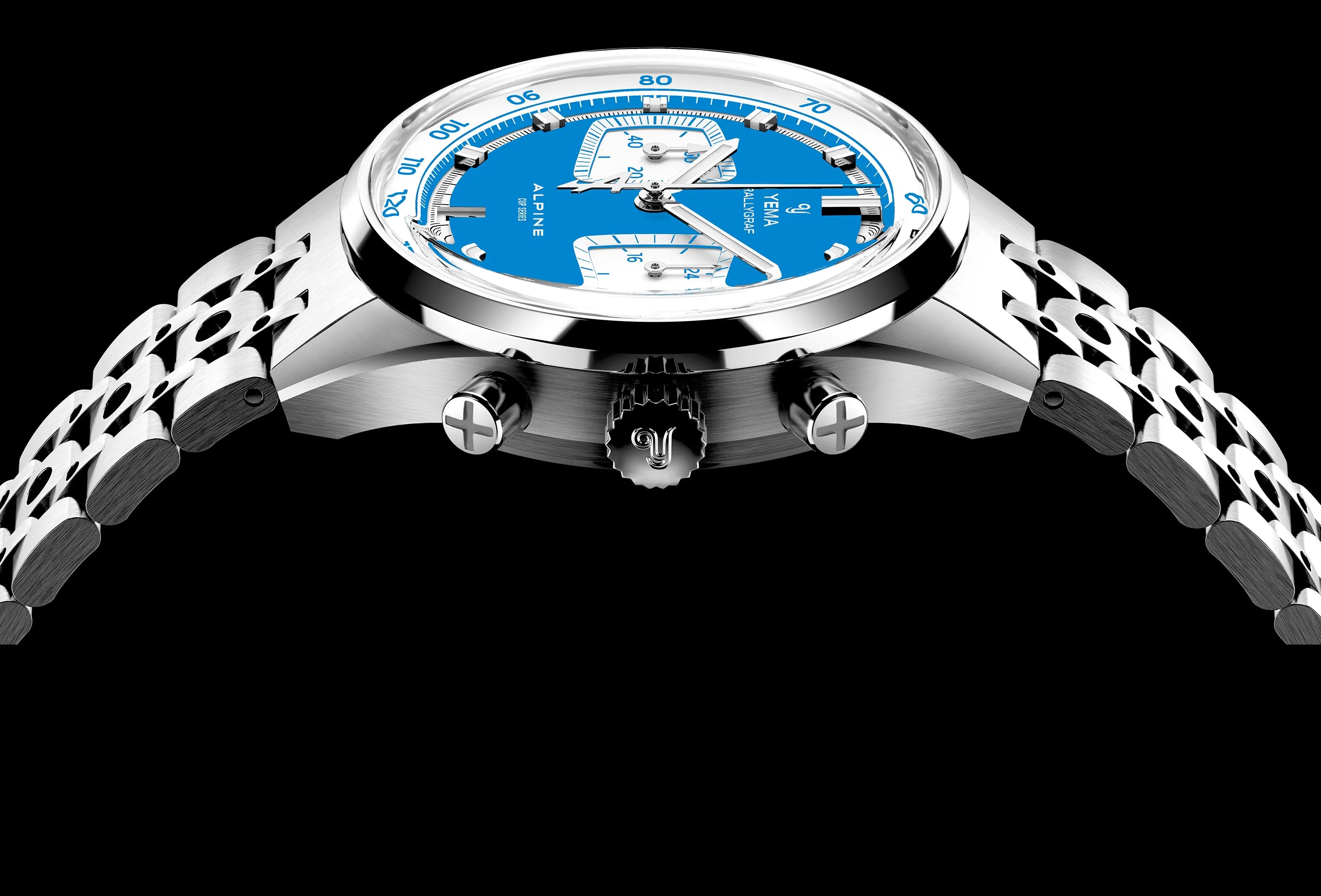 Progettato appositamente per la Rallygraf Alpine Elf Cup Series, il bracciale Rally in acciaio di YEMA si distingue per il suo design perforato distintivo, ispirato ai guanti da corsa vintage del motorsport. Realizzato interamente in acciaio inox con finitura spazzolata, unisce carattere sportivo e fascino neo-vintage, completando perfettamente il DNA racing del cronografo. Il bracciale si assottiglia dolcemente verso la fibbia per garantire maggiore comfort e una presenza più elegante al polso, mentre la fibbia déployante in acciaio integrata è dotata di chiusura di sicurezza per una vestibilità stabile e confortevole durante l’uso.