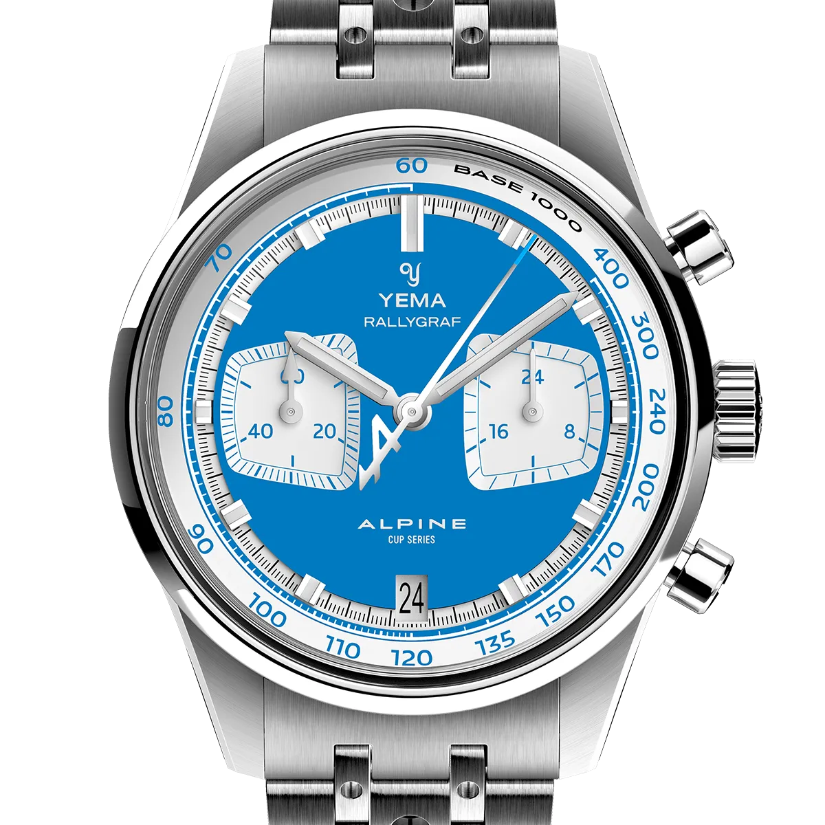 In qualità di Cronometrista Ufficiale del campionato Alpine Elf Cup Series, YEMA ha orgogliosamente progettato cronografi speciali in omaggio al leggendario spirito agonistico di Alpine. Queste edizioni esclusive sono dotate dell’affidabile calibro meca-quartz Seiko VK64 e di un distintivo anello tachimetrico interno, mentre l’esclusivo bracciale in acciaio Rally completa il design con un’estetica audace che richiama l’eleganza autentica del motorsport d’epoca. Più che semplici orologi, sono un tributo alla velocità, alla passione e all’eredità francese delle corse.