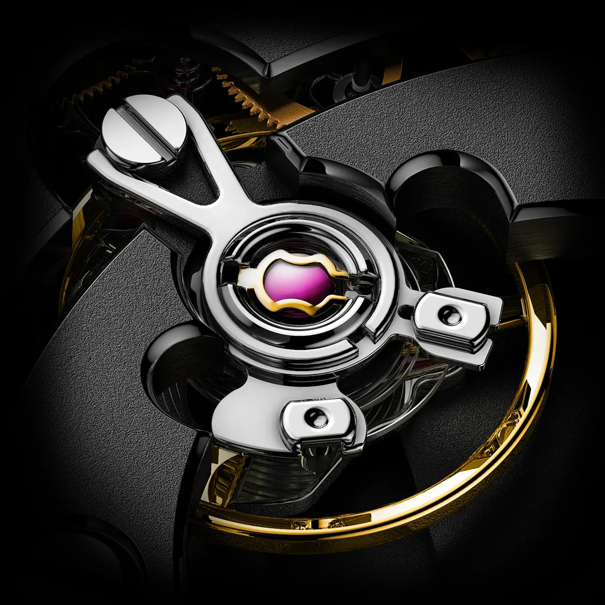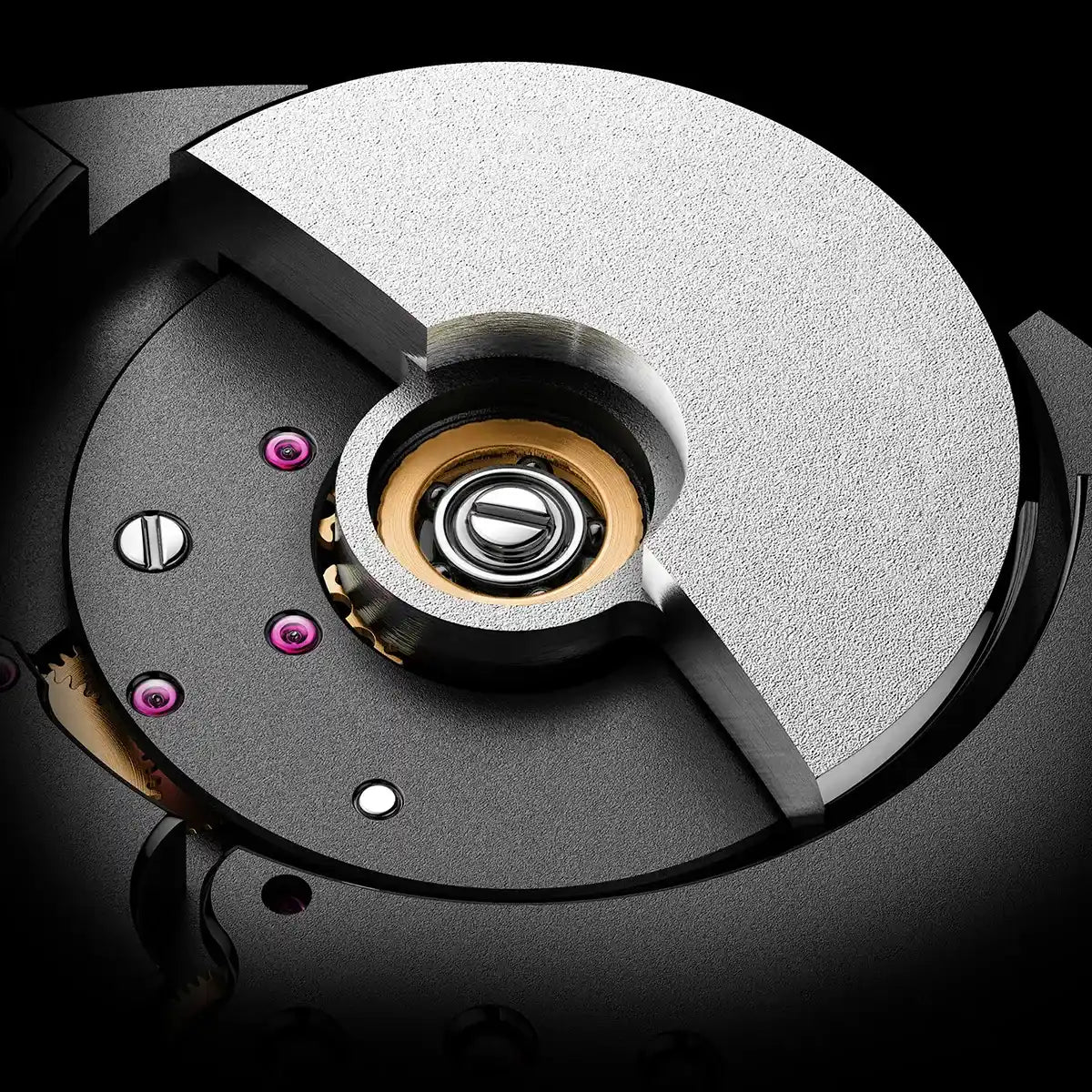 The Calibre Manufacture Morteau 20 (CMM.20) micro-rotor unique’s design offers high performance thanks to its clever architecture and high-quality Franco-Swiss components. Entirely designed and developed by Olivier Mory in La Chaux-de-Fonds, the regulating organs are manufactured in Switzerland while the bridges and mainplates are manufactured by YEMA in its Morteau workshops.