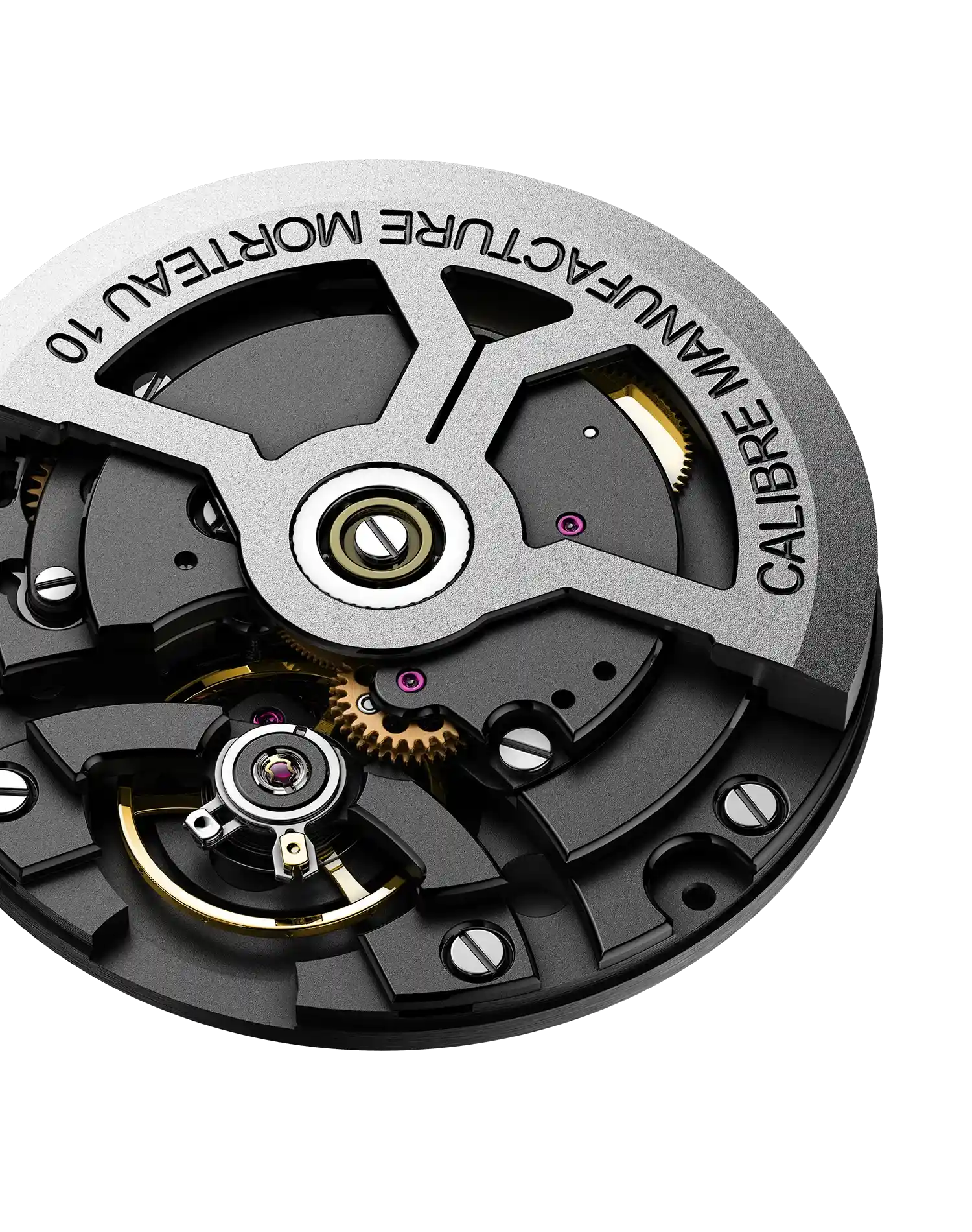 The Calibre Manufacture Morteau 30 (CMM.30) tourbillon unique’s design offers high performance thanks to its clever architecture and high-quality Franco-Swiss components. Entirely designed and developed by Olivier Mory in La Chaux-de-Fonds, the regulating organs are manufactured in Switzerland while the bridges and mainplates are manufactured by YEMA in its Morteau workshops.
