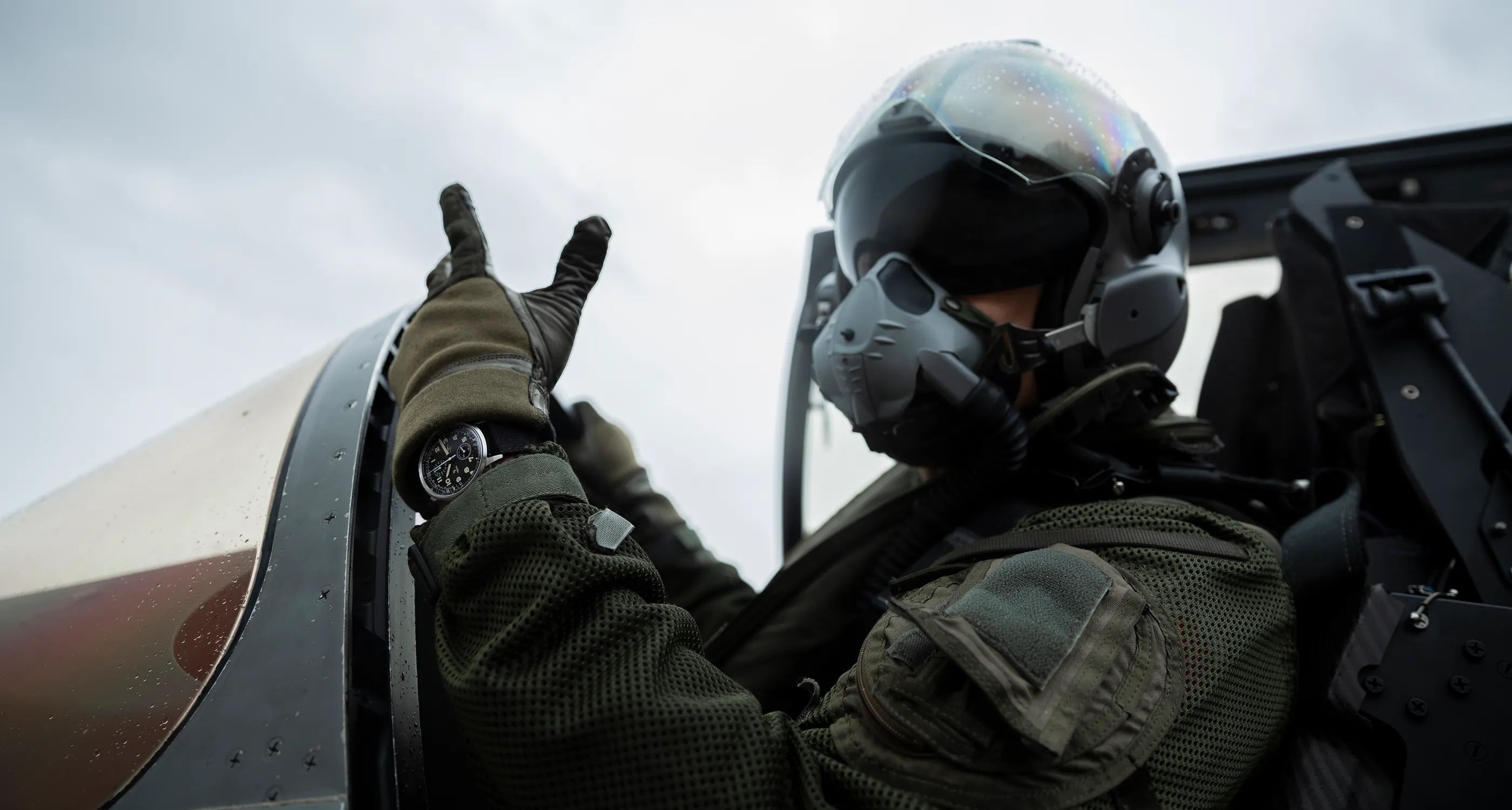 Designed and developed in collaboration with the French Air Force, the Flygraf Bi-Compax French Air Force is equipped with Seiko's VK61 hybrid caliber featuring a vertical bi-compax chronograph and French Air Force's logo and roundel stamped in the dial.
