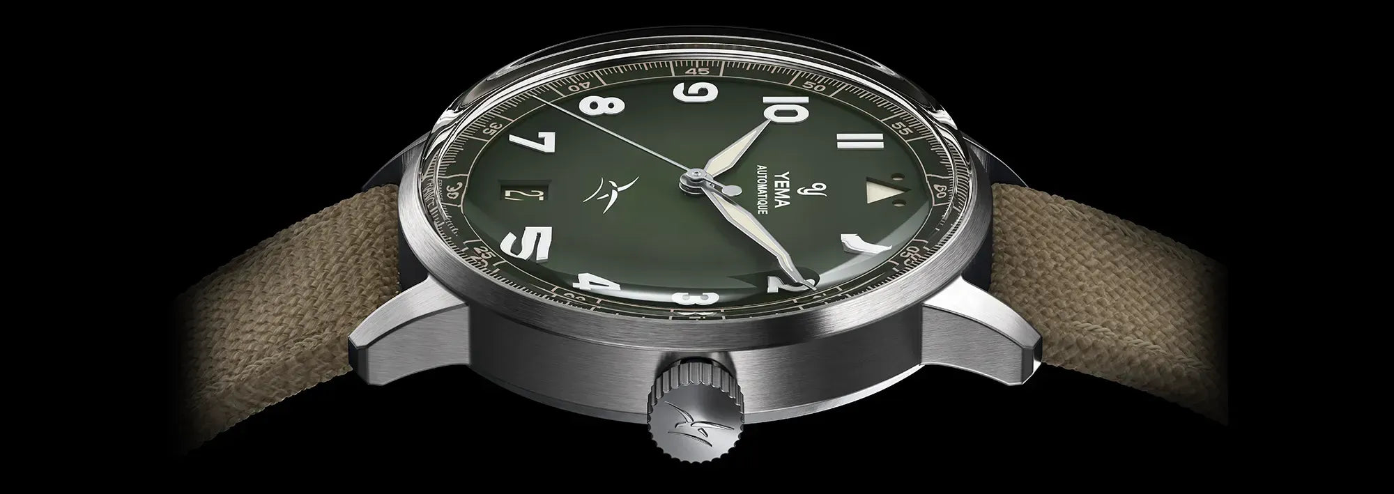Designed and developed in collaboration with the French Air and Space Force and inspired by Flieger Type A watches, the Flygraf Flieger is a reinterpretation of the legendary military aviation watch model. Featuring a titanium case that is extremely lightweight and durable, this military model is equipped with our in-house caliber, the YEMA 2000.