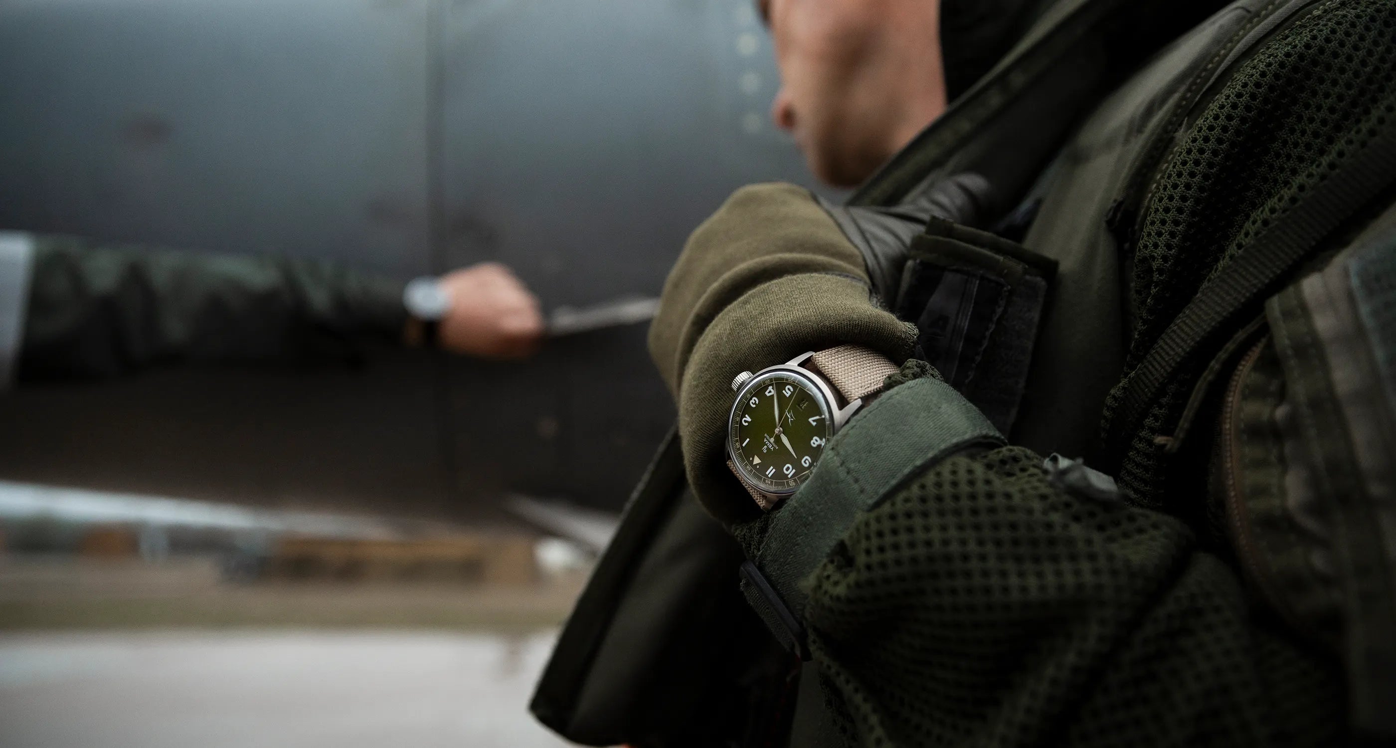 The slightly oversized crown allows fighter pilots to easily manipulate their watch even when wearing gloves, making this model a true flight instrument. This timepiece features a high-quality 2.00 mm double-dome sapphire crystal providing better readability, increased resistance, and a distinctly vintage appearance.