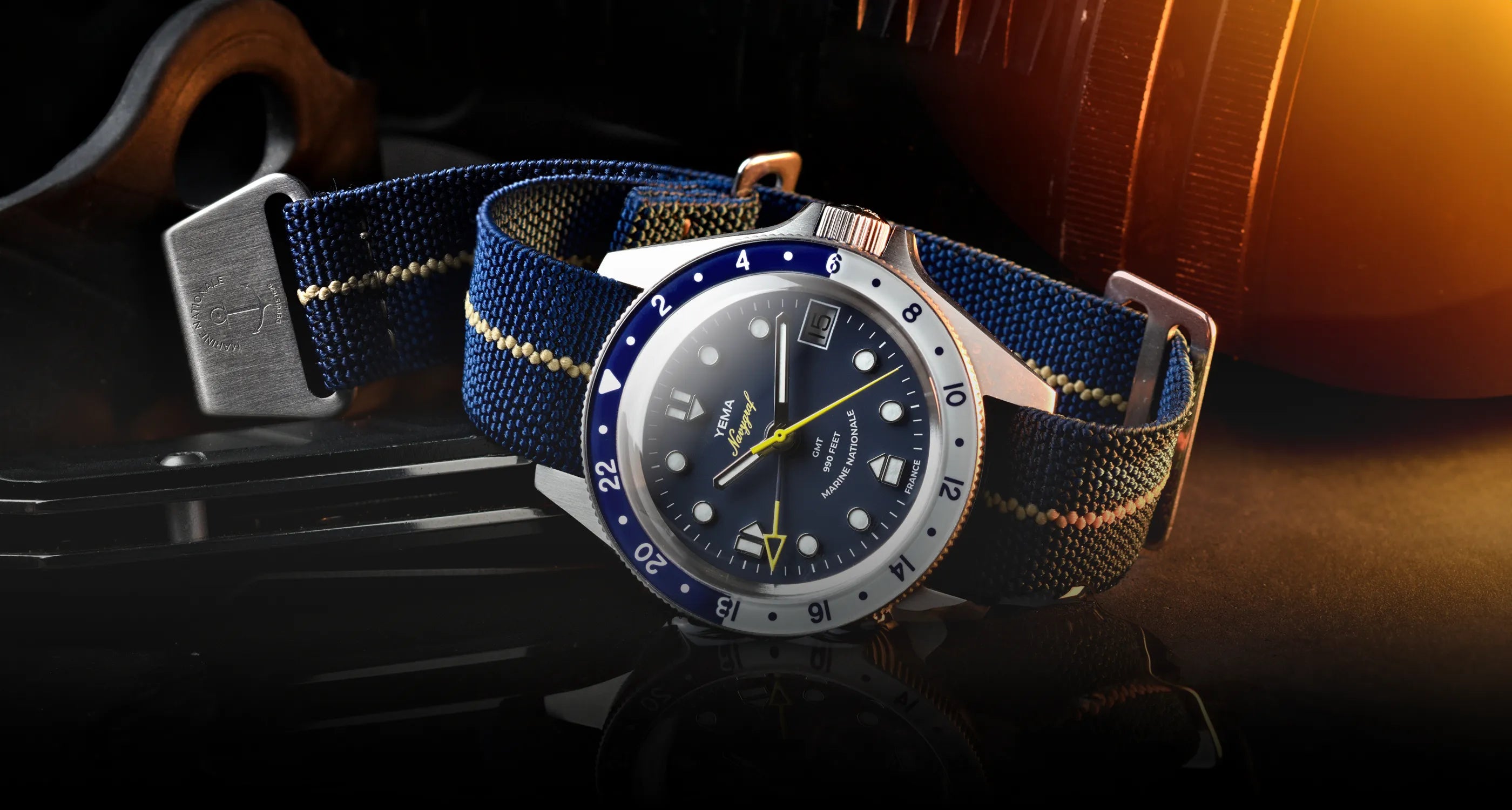 This iconic strap was originally handmade by French Marine Nationale combat divers in the 1970’s. The resourceful frogmen fashioned straps from used parachutes by recovering the elastic webbing to sew them back on and adapt them to their diver watches. For years, this type of strap has remained purely military, nowadays it’s a great alternative to NATO straps.