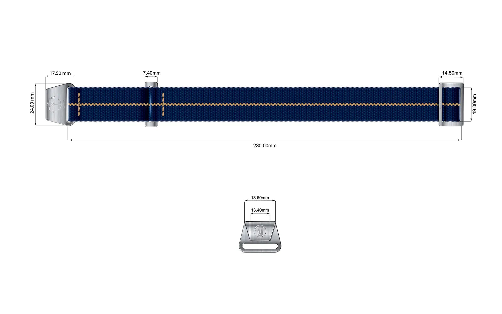 The unique single pass design offers the security of a regular NATO strap but wears slimmer on the wrist as only one layer of elastic goes under the watch head.