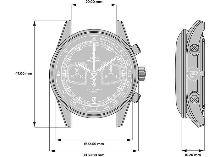 The hands and hour markers are coated with a layer of Super-LumiNova BGW9. The Rallygraf offers therefore perfect readability in the dark.