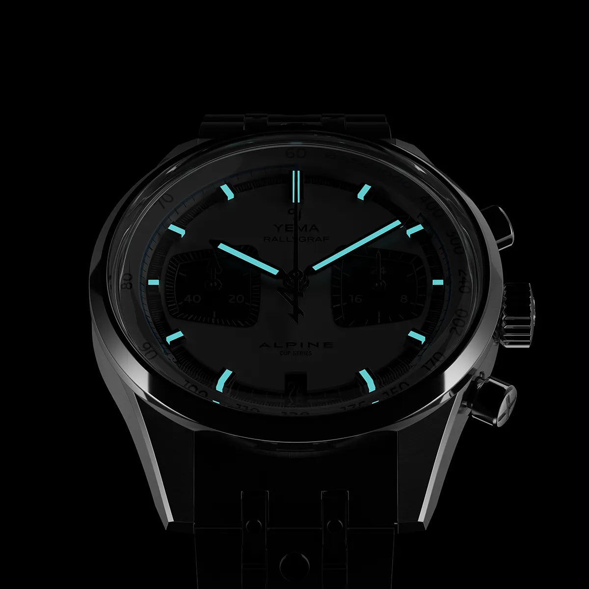 As the Official Timekeeper of the Alpine Elf Cup Series championship, YEMA proudly unveils two special Rallygraf chronographs designed in tribute to Alpine’s legendary racing spirit. These exclusive editions are equipped with the reliable Seiko VK64 mecha-quartz caliber and a distinctive internal tachymeter chapter ring, while the one-of-a-kind Rally steel bracelet completes the design with a bold aesthetic evoking the raw elegance of vintage motorsport. More than just timepieces, they are a tribute to speed, passion, and French racing heritage.