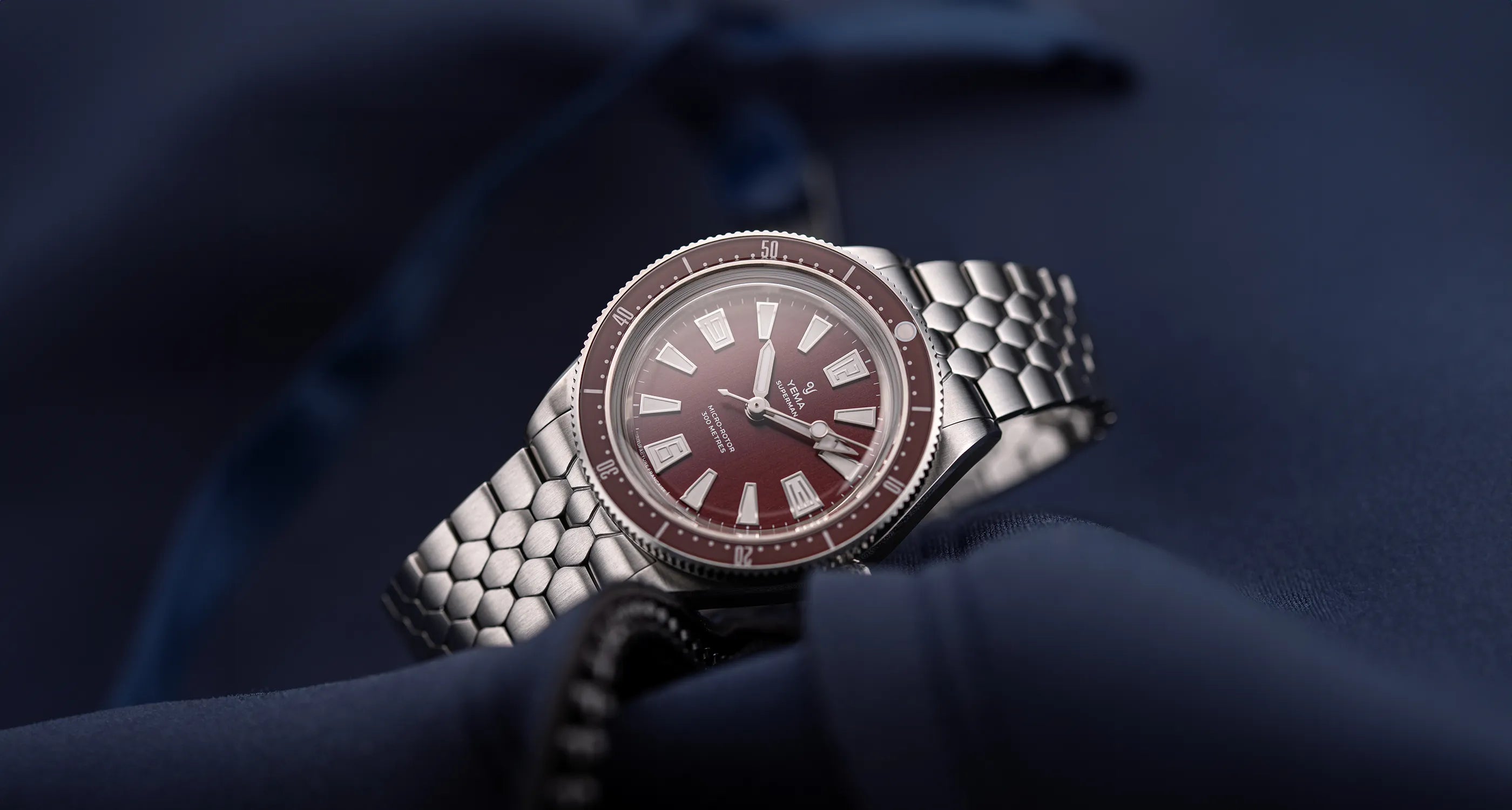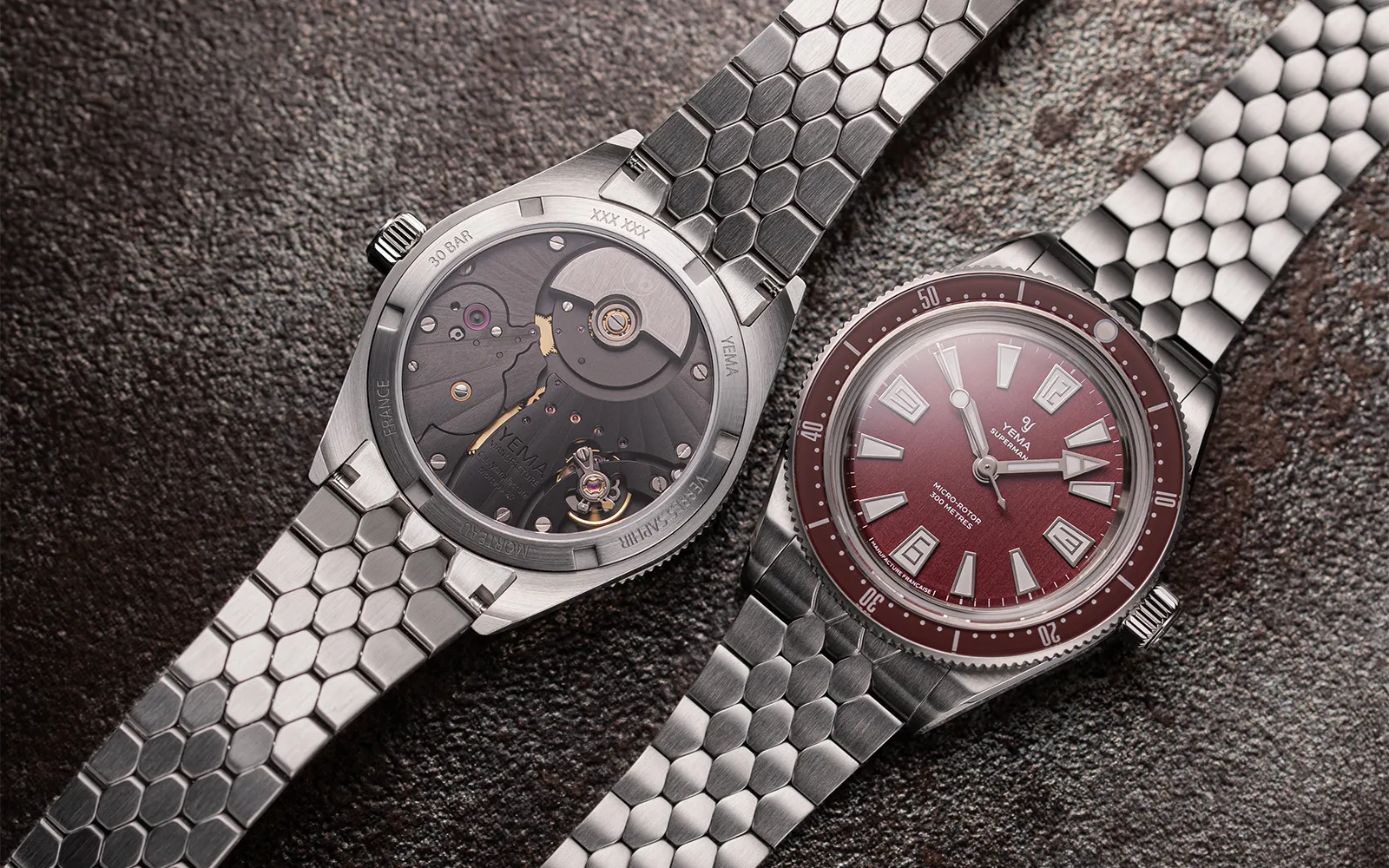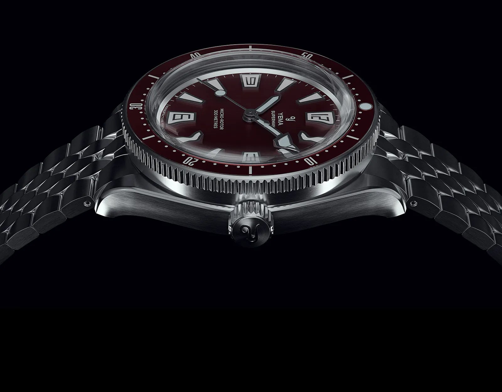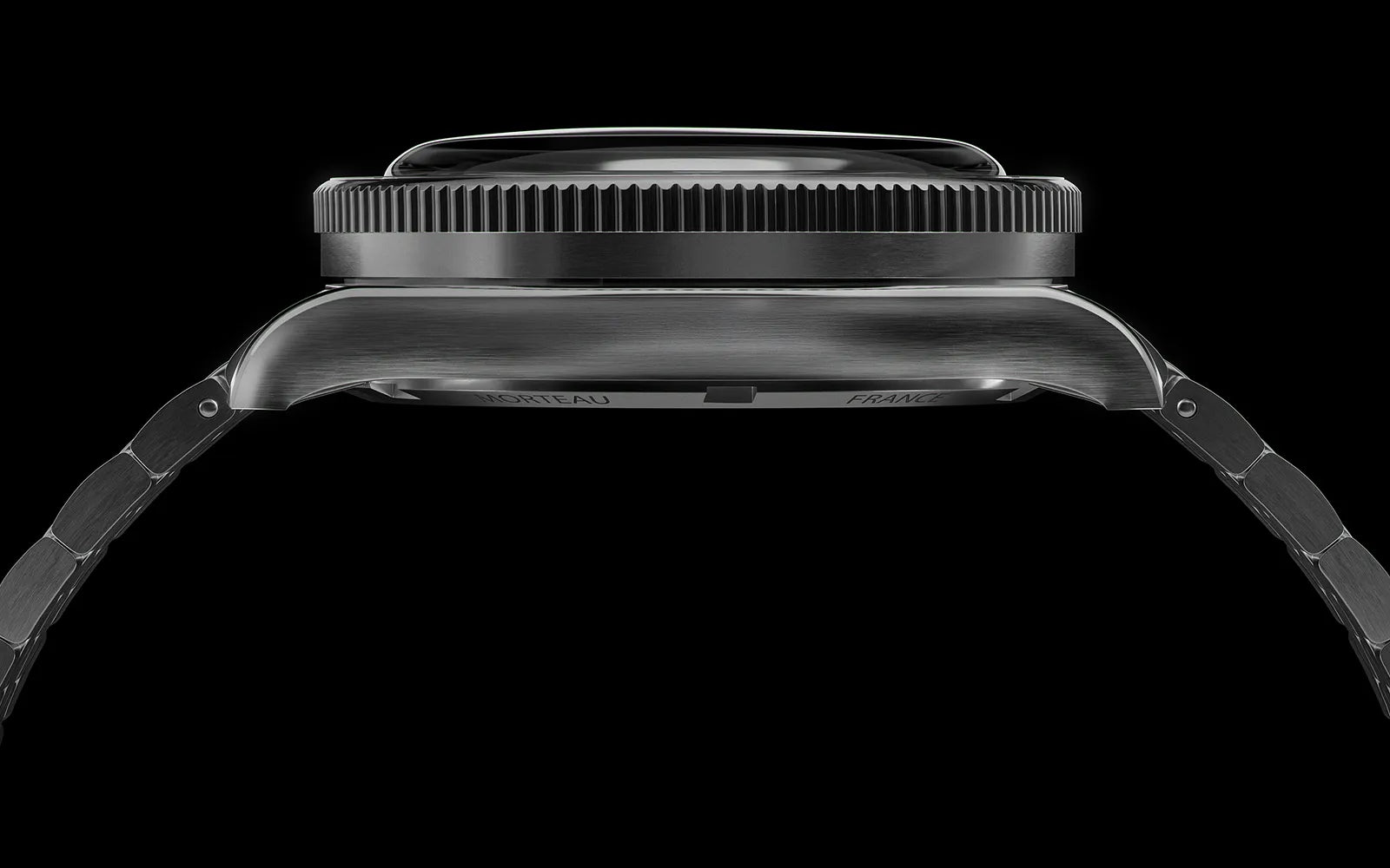 The iconic 1960s YEMA Scales bracelet has been slimmed down by 0.40mm so as to harmoniously integrate with the Skin Diver.