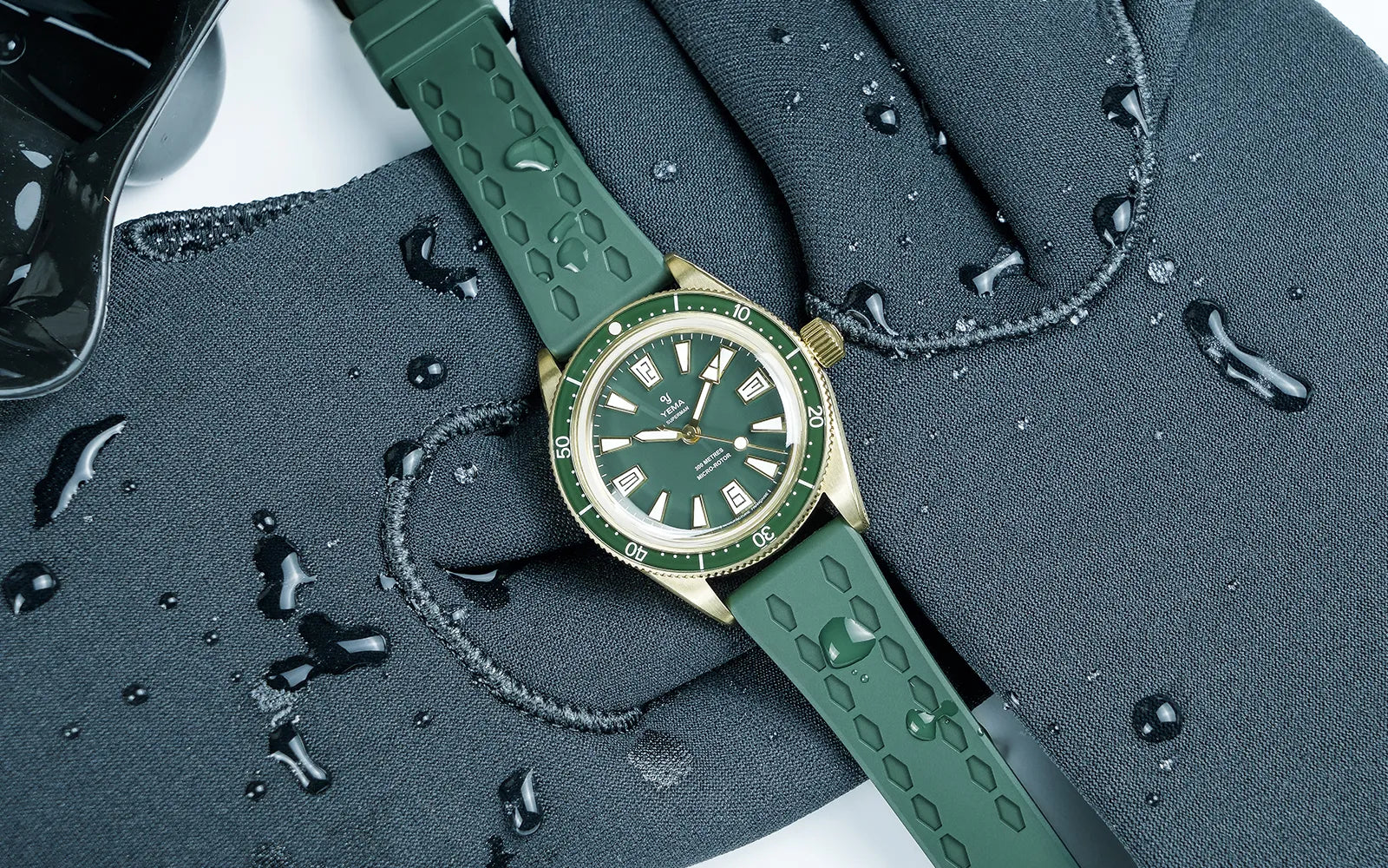 Skin diving (or free-diving) became very popular in the mid-20th century which led to a wide variety of utilitarian watches that were designed to be used during recreational diving. Water resistant skin diver watches were instantly recognizable: They featured a slimmer and smaller case than the professional dive watches, as well as unguarded crown, making them more ergonomic and easy to wear. On top of that, they were stylish enough to feel appropriate out of the water too, offering a dressier and more refined approach, some sort of rugged elegance.