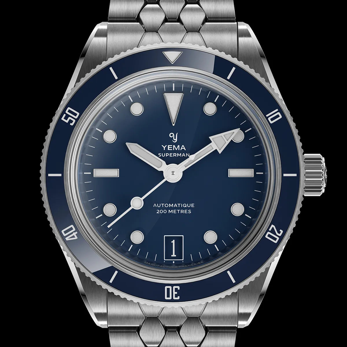 The iconic Superman case has been carefully reimagined with a more streamlined profile. The new stainless steel case, available in 39.5mm and 41mm features a clean, crown-guard-free design, a purer, more symmetrical silhouette.