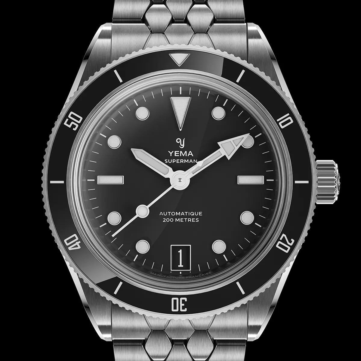 The iconic Superman case has been carefully reimagined with a more streamlined profile. The new stainless steel case, available in 39.5mm and 41mm features a clean, crown-guard-free design, a purer, more symmetrical silhouette.