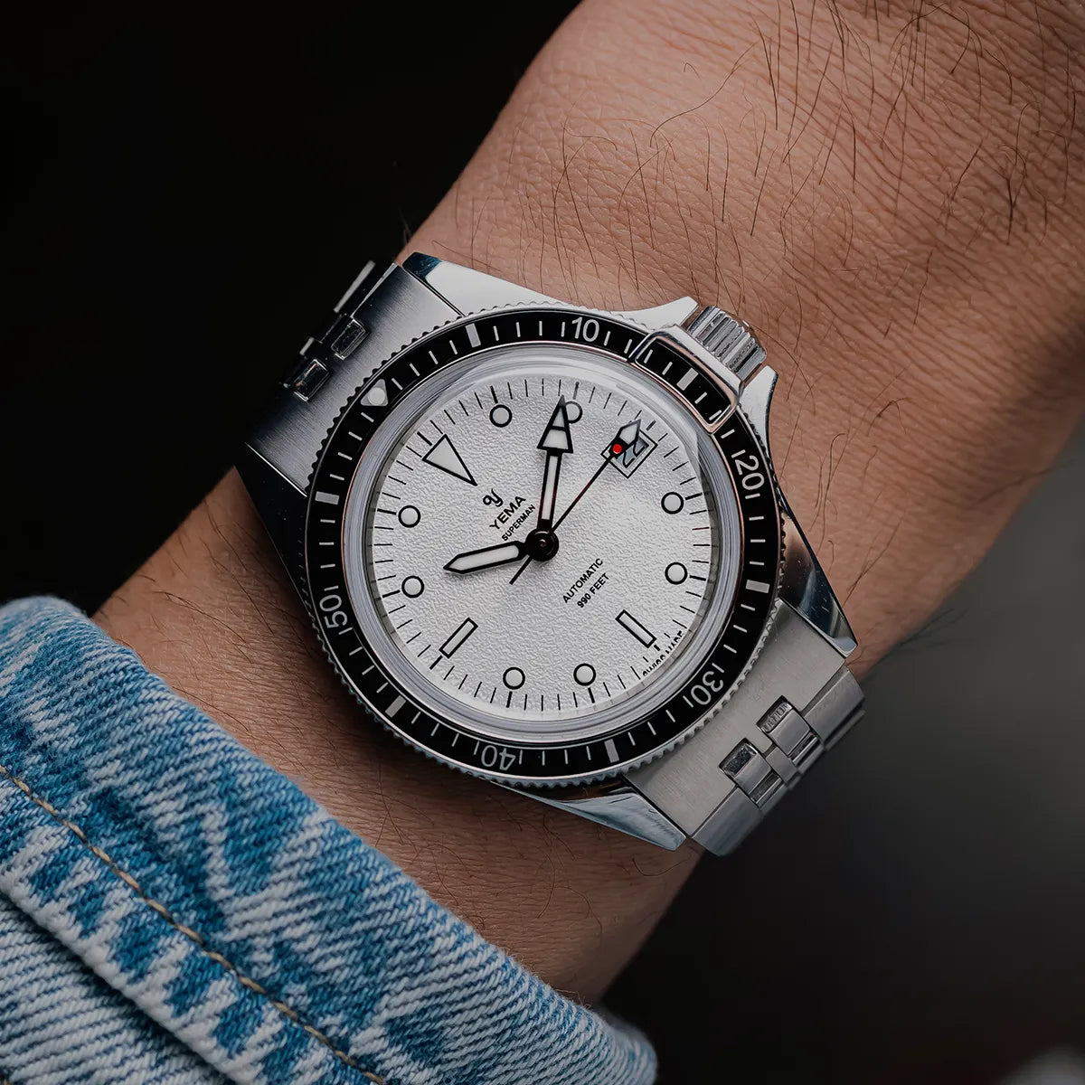 Over the years the YEMA Superman has become one of the most recognised French dive watches. The Superman Heritage model has preserved the aesthetic and vintage aspect of the original 1970s Superman while incorporating functional characteristics of contemporary professional diving watches.