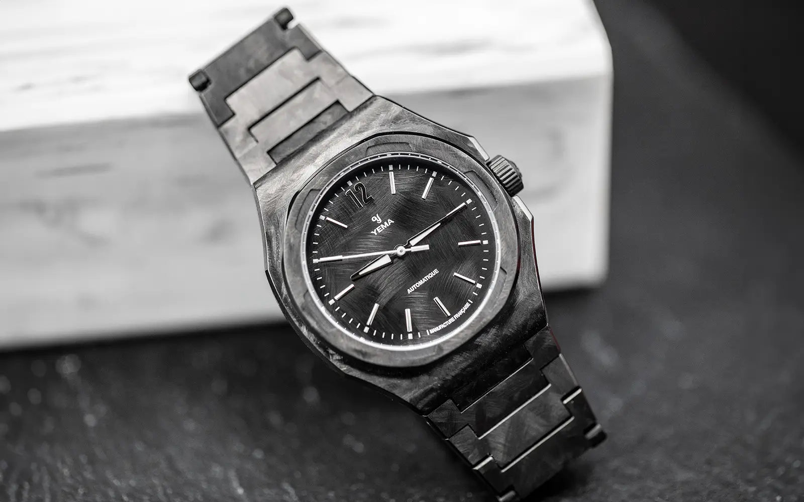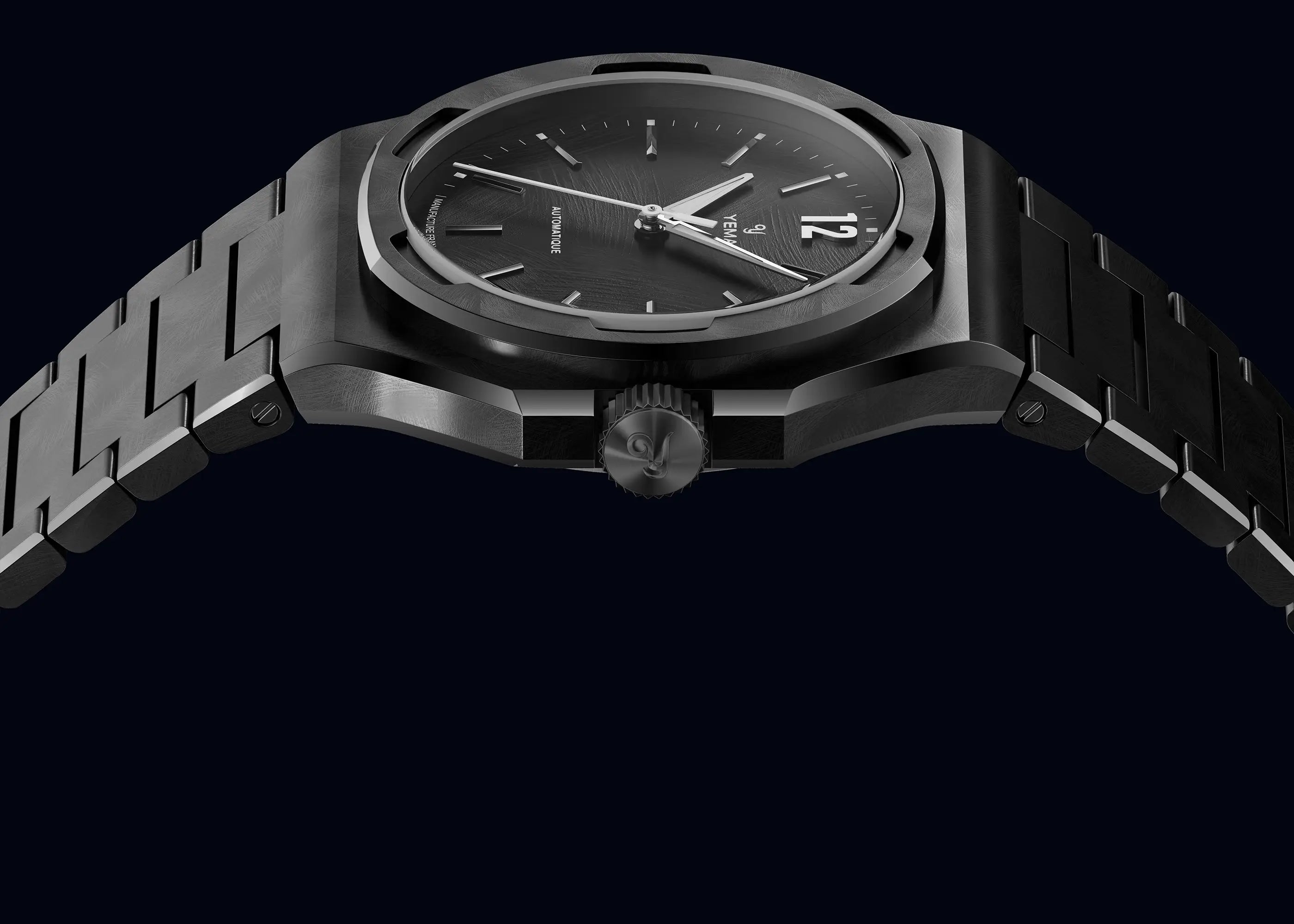 YEMA's iconic integrated bracelet model returns in a collector’s hand-finished Limited Edition equipped with our in-house micro-rotor caliber. Each time piece is individually crafted, ensuring no two watches are identical. The combination of one-of-a-kind finishing on the dial, case, bracelet, and movement ensures that each watch tells its own story, making each time piece an artistic signature.