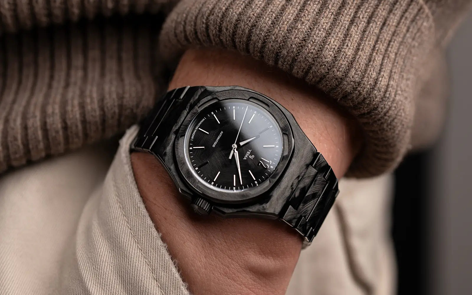 The 39mm steel case takes the form of an asymmetrical octagon. We have used the complex case geometry to our advantage by executing every single angle with the same set of irregular hand-brushed/polished PVD finishes, that captures the eye and gives great elegance and singularity to the case while preserving the marked sporting spirit.