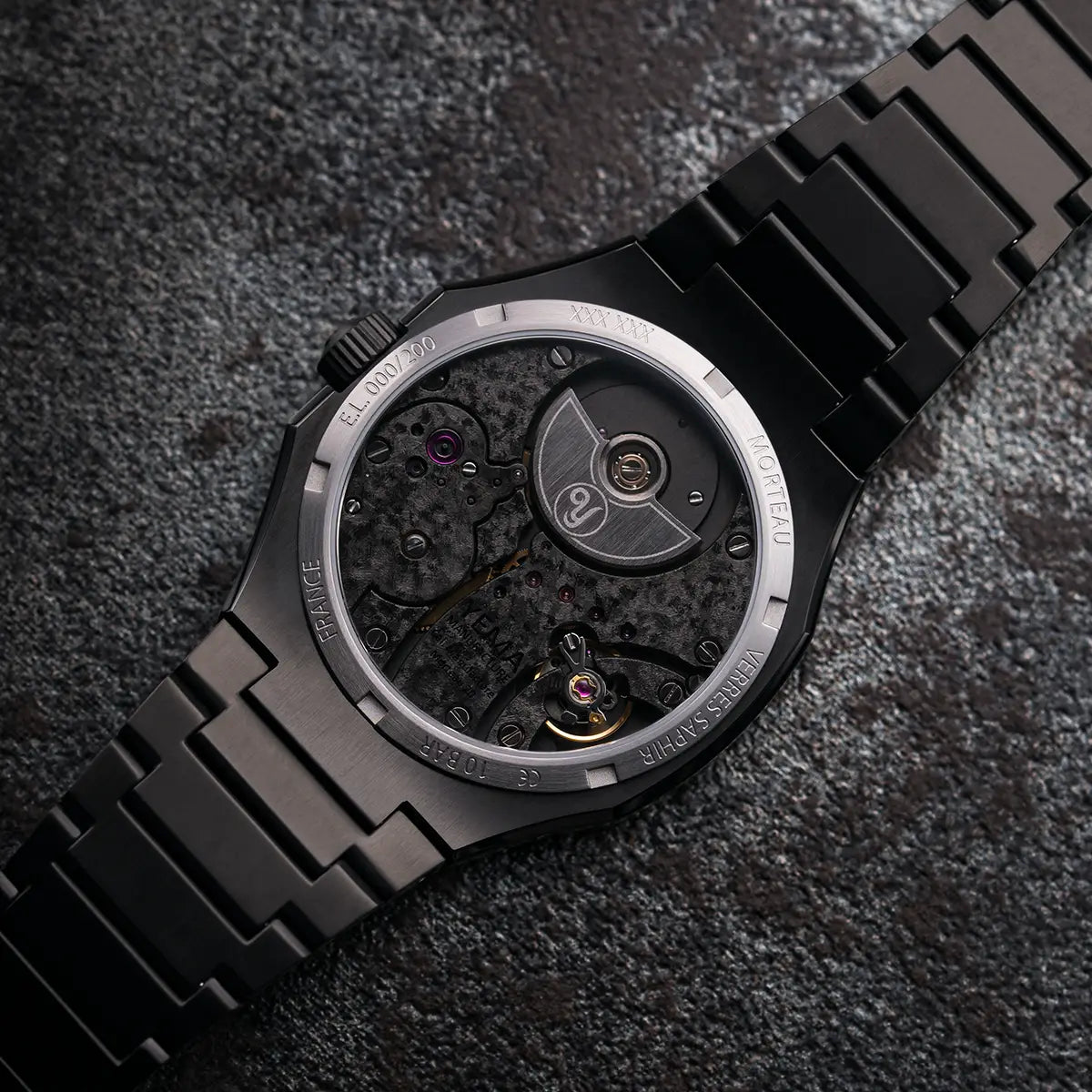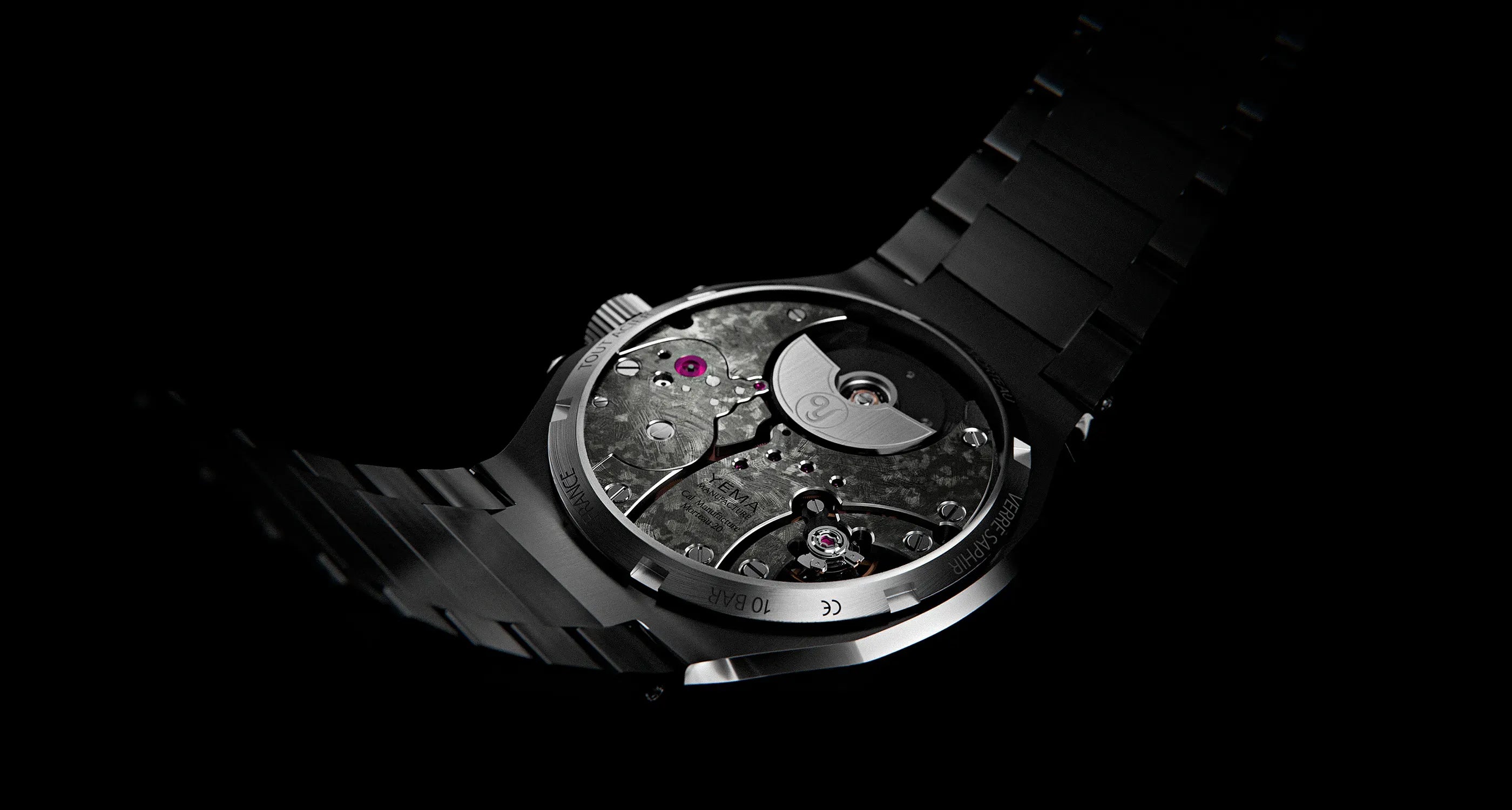 The sapphire case back allows you to admire our in-house CMM.20 micro-rotor caliber while preserving a 10 BAR (100m) water resistance. Each case-back is engraved with a unique serial number, also displayed on the 5-year warranty card, and the corresponding Limited Edition number out of a total of 200 timepieces.