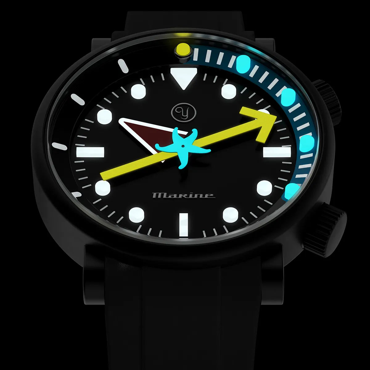Introducing a mesmerizing artistic dial with raised markers crafted from 3D Super-LumiNova, where creativity meets cutting-edge technology. These unique luminescent 3D markers transform timekeeping into a visual art form, where light, color, and creativity converge to redefine the way you perceive and experience time during low light conditions. This unique patented 3D process whereby Super-LumiNova is poured into polyester micro moulds to produce tiny blocks which, because of their increased volume, give off more light.